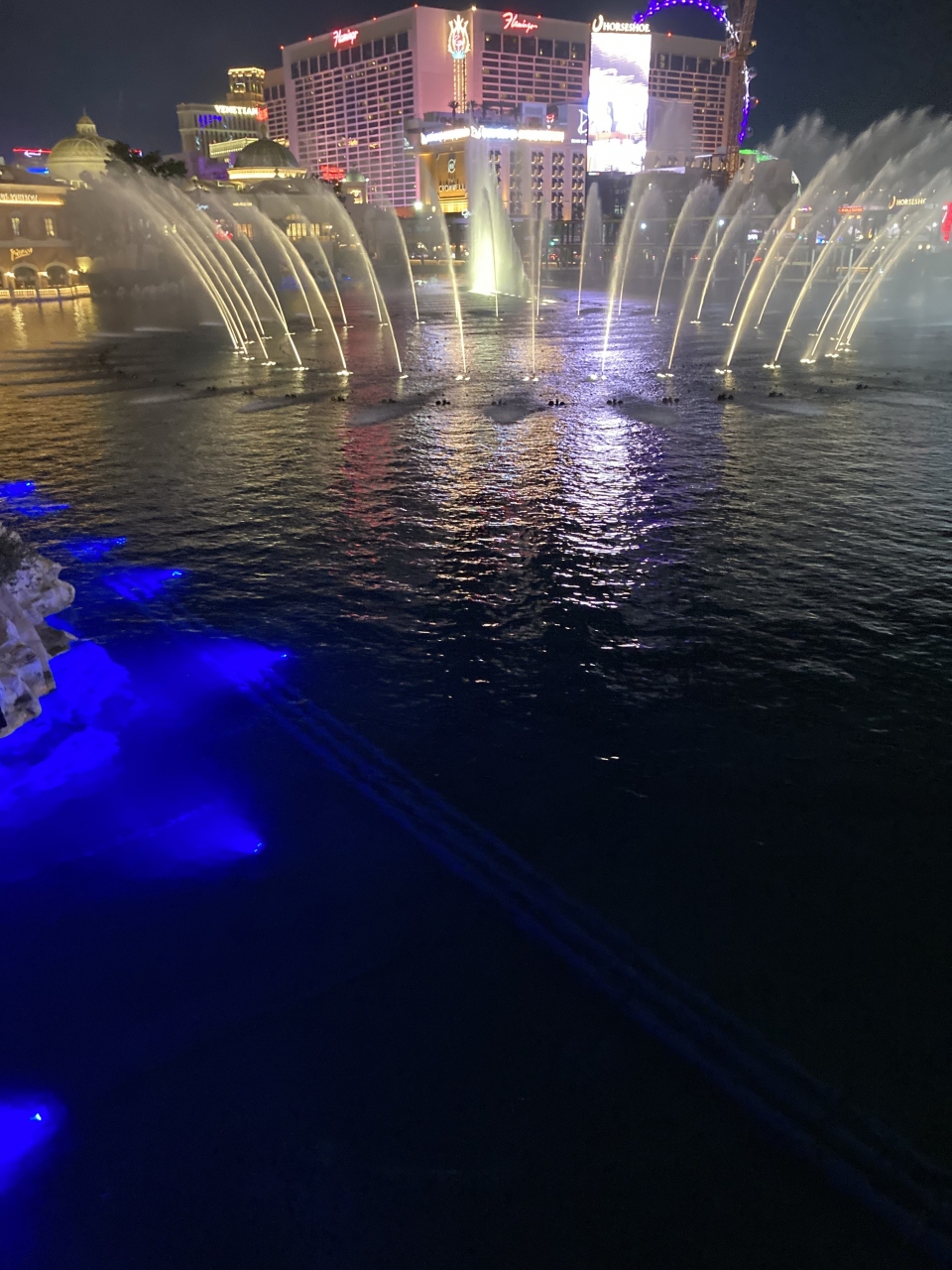 ベラージオの噴水ショーを見て来ました。ルルブや地球の歩き方にもオススメのショート紹介されています。もちろん無料で見れる噴水ショーです。お昼もしていますが、夜の方が時間が短く長く見れます。人混みは結構ありますが、何度も見せてくれるのでどんどん良い場所を取れます。噴水ショーはもう素晴らしくてまるで仕掛け花火を見ているような感じになります。音響効果も最高で噴水が何メートルも高く上がったときに仕掛け花火のようにドーンと音が鳴って迫力満点です。絶対に見に行ってください。