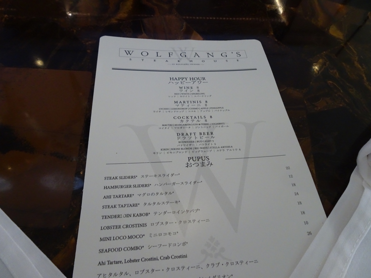 有吉の夏休みなどでよく登場するステーキハウスです。円高のため予算を考え、15時からのハッピーアワーを利用しました。量的に足りるか不安でしたが、テイストオブニューヨーク1つを2人でシェアして十分な量でした。お酒もかなり安い価格に設定されており良心的でした。ディナーだとおそらく倍近くかかってしまうかもしれません。