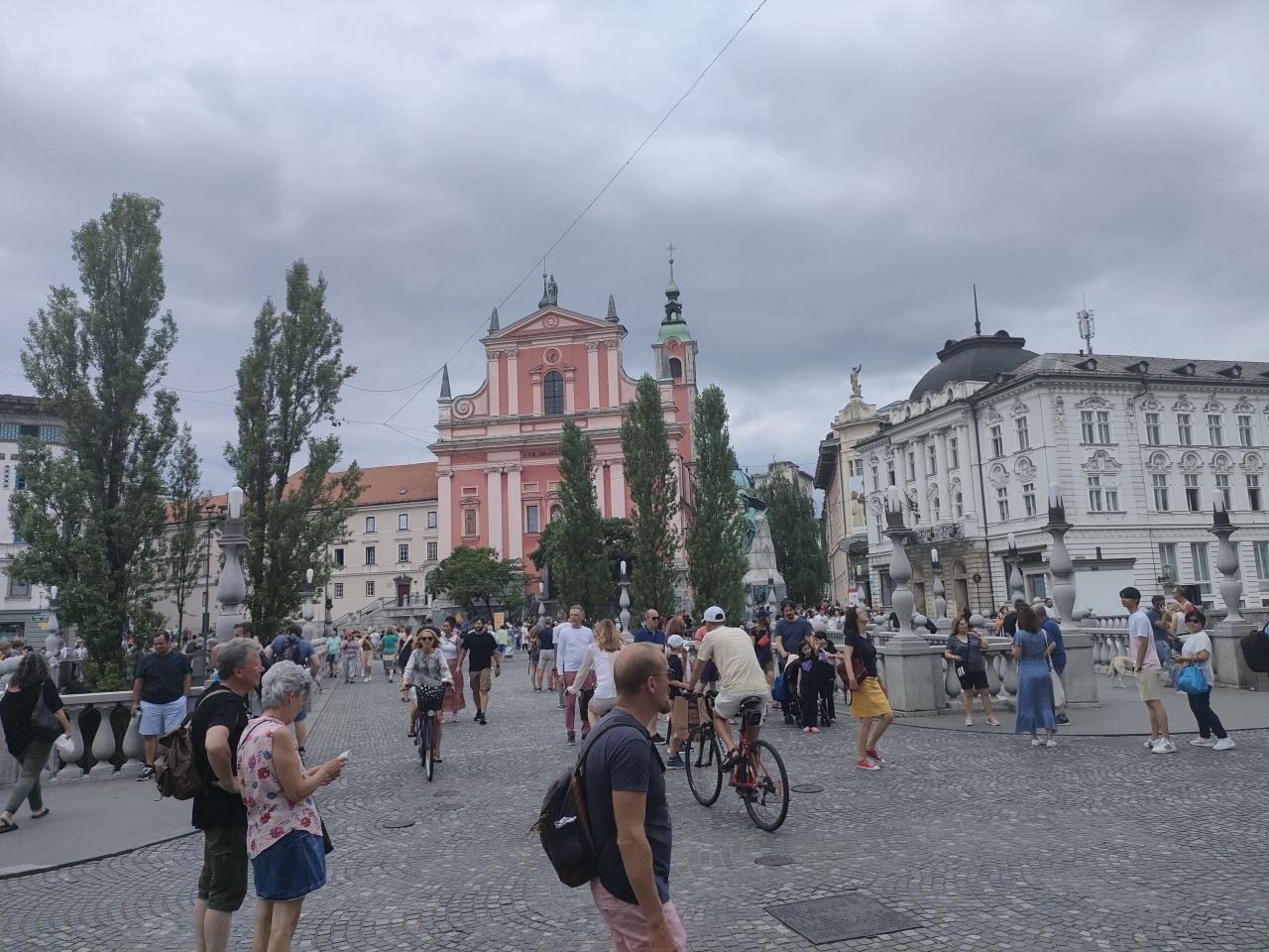 リュブリアナの観光地を巡るとき、ここを中心にして回るといいかもしれません。広場の南側には三本橋、北側には聖フランシスコ教会、またここからリュブリアナ城も見ることができます。ここに来ればリュブリアナ観光の半分は済ませることができたような気分になります。ただ人が多いので疲れますが。。。