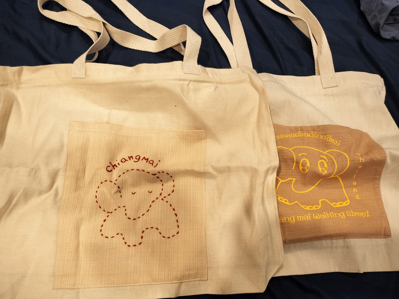 ちょうどコムローイ祭りの前日でしたので、スゴイ人出で驚きました。1年で一番観光客が多い日だったかと思います。チェンマイらしい布製のトートバッグとサンダルを購入しました。観光客相手にしては良心的な価格設定のお店が多く、購入したサンダルもニイマン辺りの店に比べると3割くらいは安かったです。