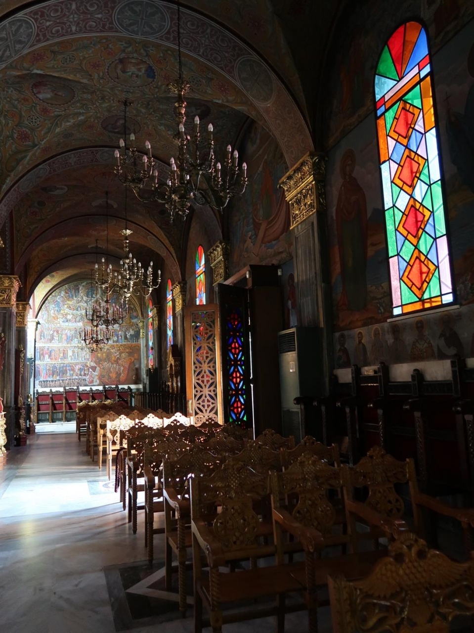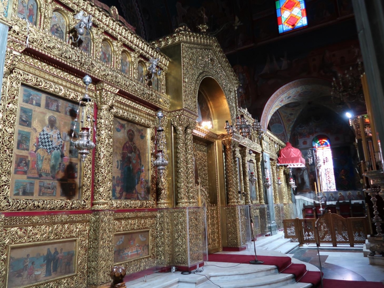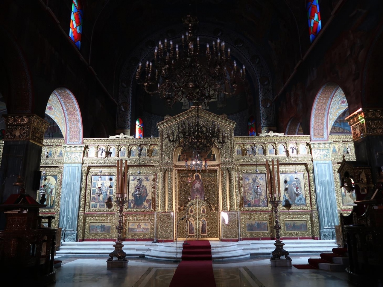 ザキントス島で1547年に生を受けた聖ディオニシオスを祀っている教会で、竣工は1948年と新しいんですが、1953年に一帯を襲った大地震の際にも何の被害も出なかったことから、島の守護神として地元の人々の信仰を集めているそうです。