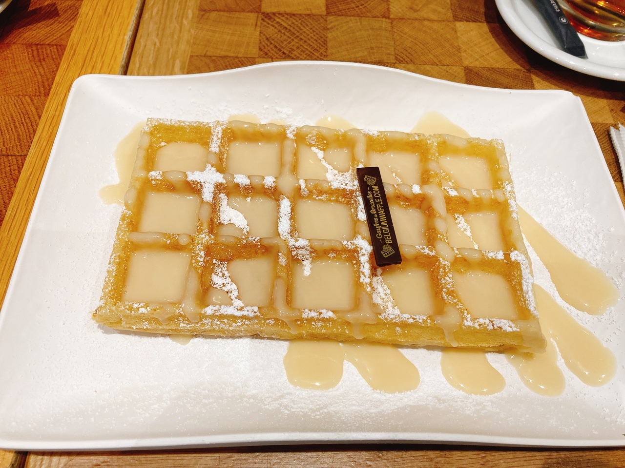 わたしはホワイトチョコがけのベルギーワッフルを食べ、同行者は塩キャラメルがけのベルギーワッフルを食べました。