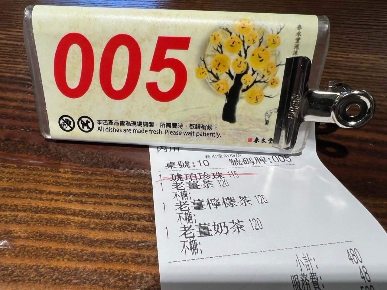 番号札をテーブルに置きスタッフが持ってくるのを待ちます。