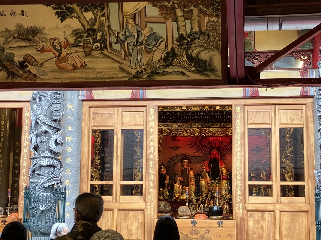 三国志の関羽を祀っている廟です。中に入ると青い法衣を着た方にお払いをしていただけました。以前頂いたカードがたのお守りがボロボロになったので、どの様にしたら良いのか手振りで聞くと、日本語が話せる方が来てくれました。心配な事が無ければそのまま持っていれば良いとのことでした。