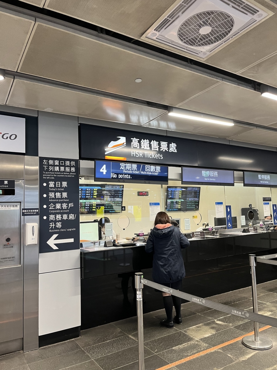 窓口の方に、新幹線に乗りたいことを伝えると、切符売り場を教えてくれました。新幹線乗り場は、地下でした。つたない英語でもなんとかなりました。クレジットカードで支払えました。