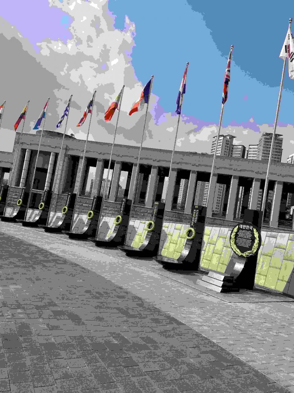 敷地内には朝鮮戦争で国連軍側で北側と戦ってくれた国の国旗がはためいております。韓国の歴史を知るのに非常に勉強になりました。