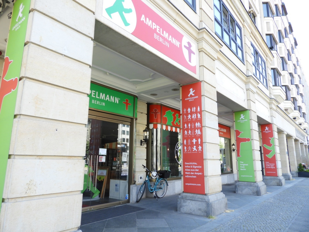 東西ベルリン(ドイツ)統一後しばらくしてから俄かに人気が出て、話題にのぼるようになった、歩行者用信号機のデザインである「アンペル(信号)マン(男)」のグッズを扱う店。