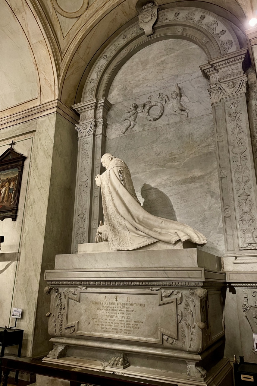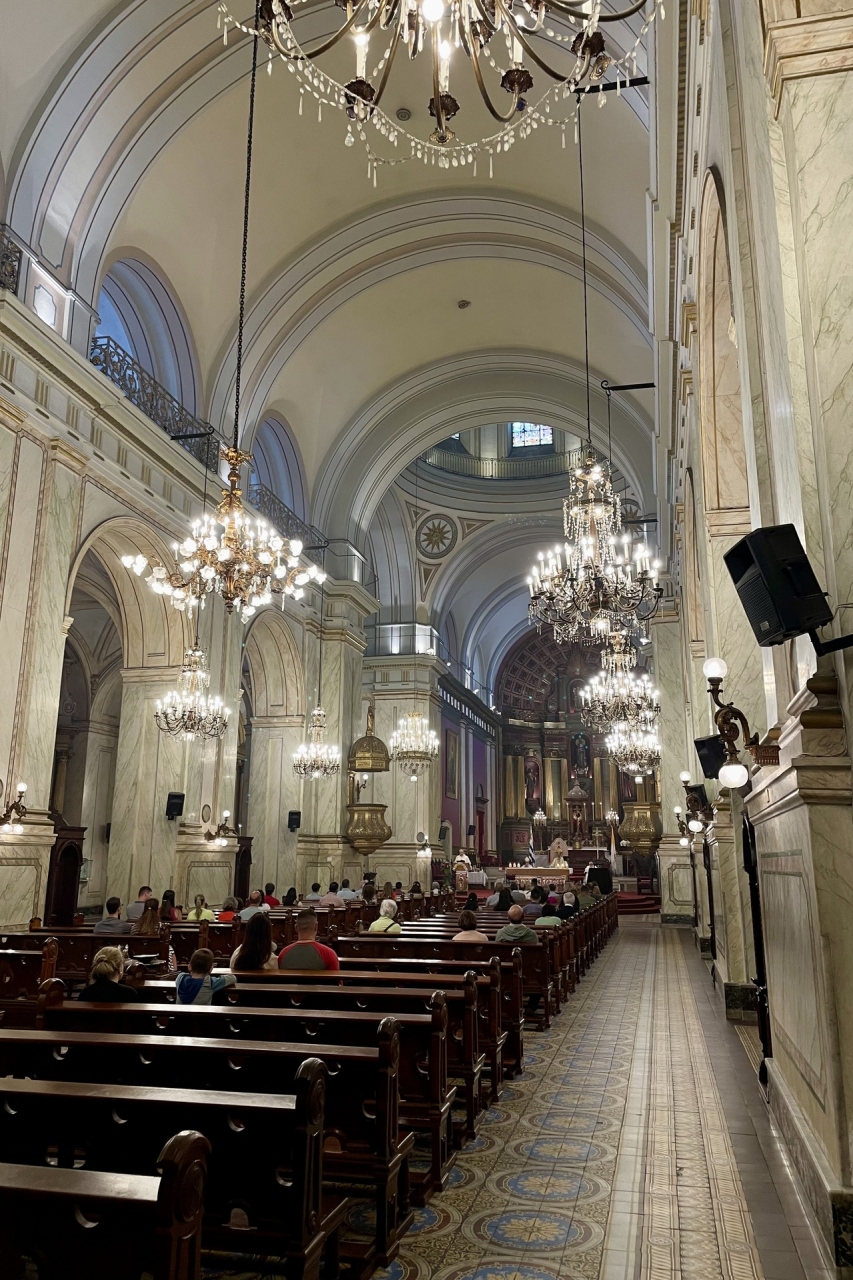モンテビデオの旧市街(シウダービエハ)の憲法広場に面しています。クリスマスの日に訪れたので地元の人達がミサに参加していましたが、入場できて後ろから静かに観覧しました。内部のひとつひとつの彫刻が美しいです。