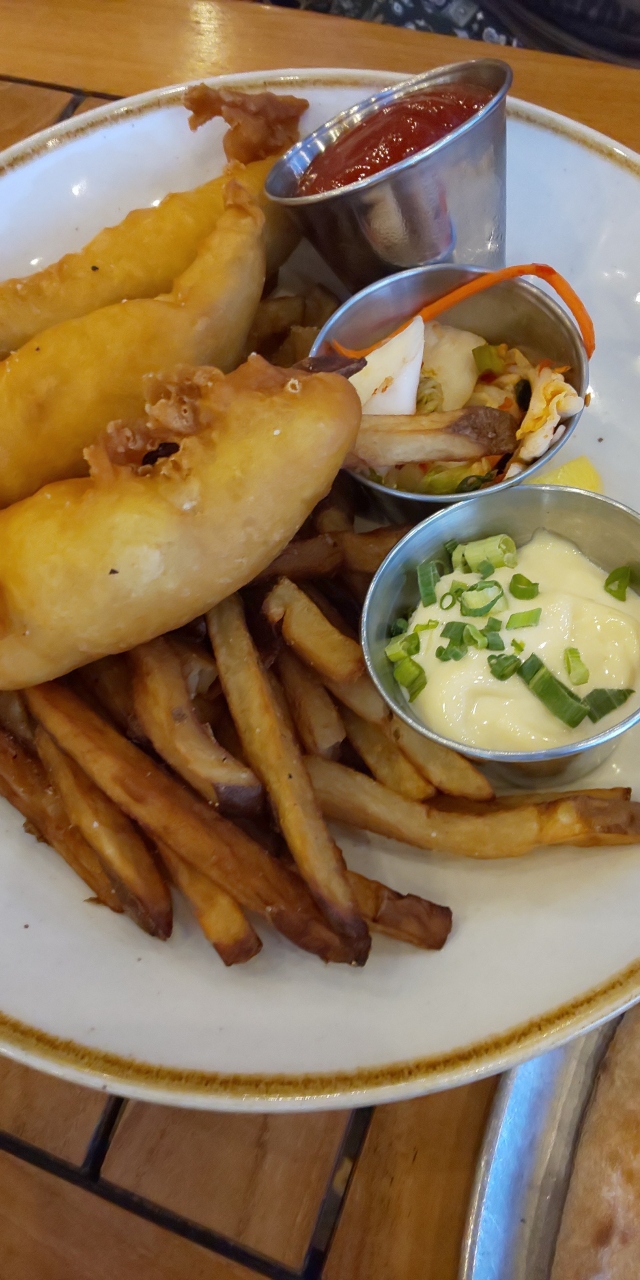 フィッシュ&チップスがとてもおいしく、さまざまなソースでいただけて、最後まで飽きずにたべられました。お魚がふわふわ!