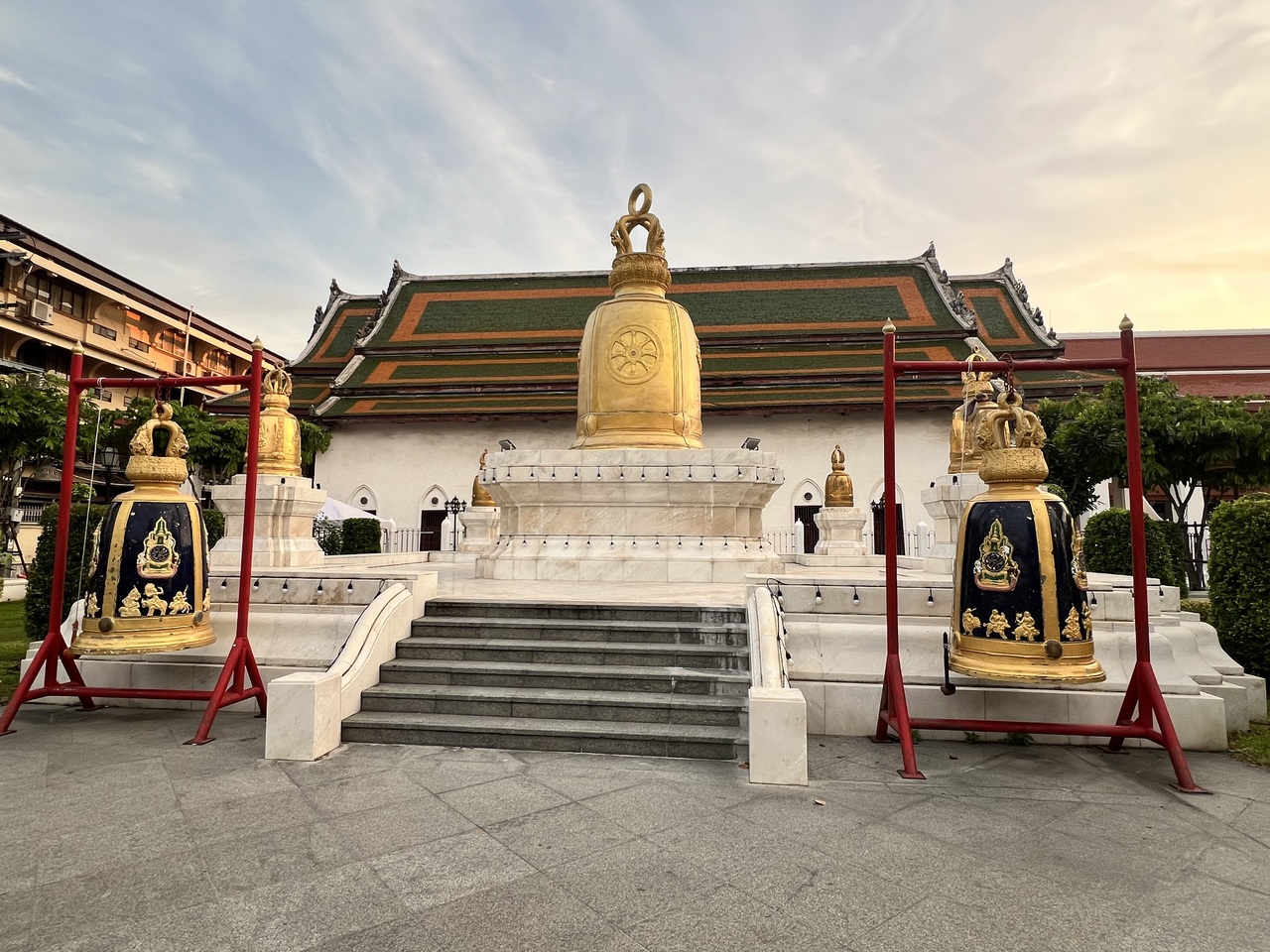 行きはオレンジライン16バーツで王朝市場で降りてから歩きで、帰りはワットラカンから対岸への渡し船4.5バーツで。