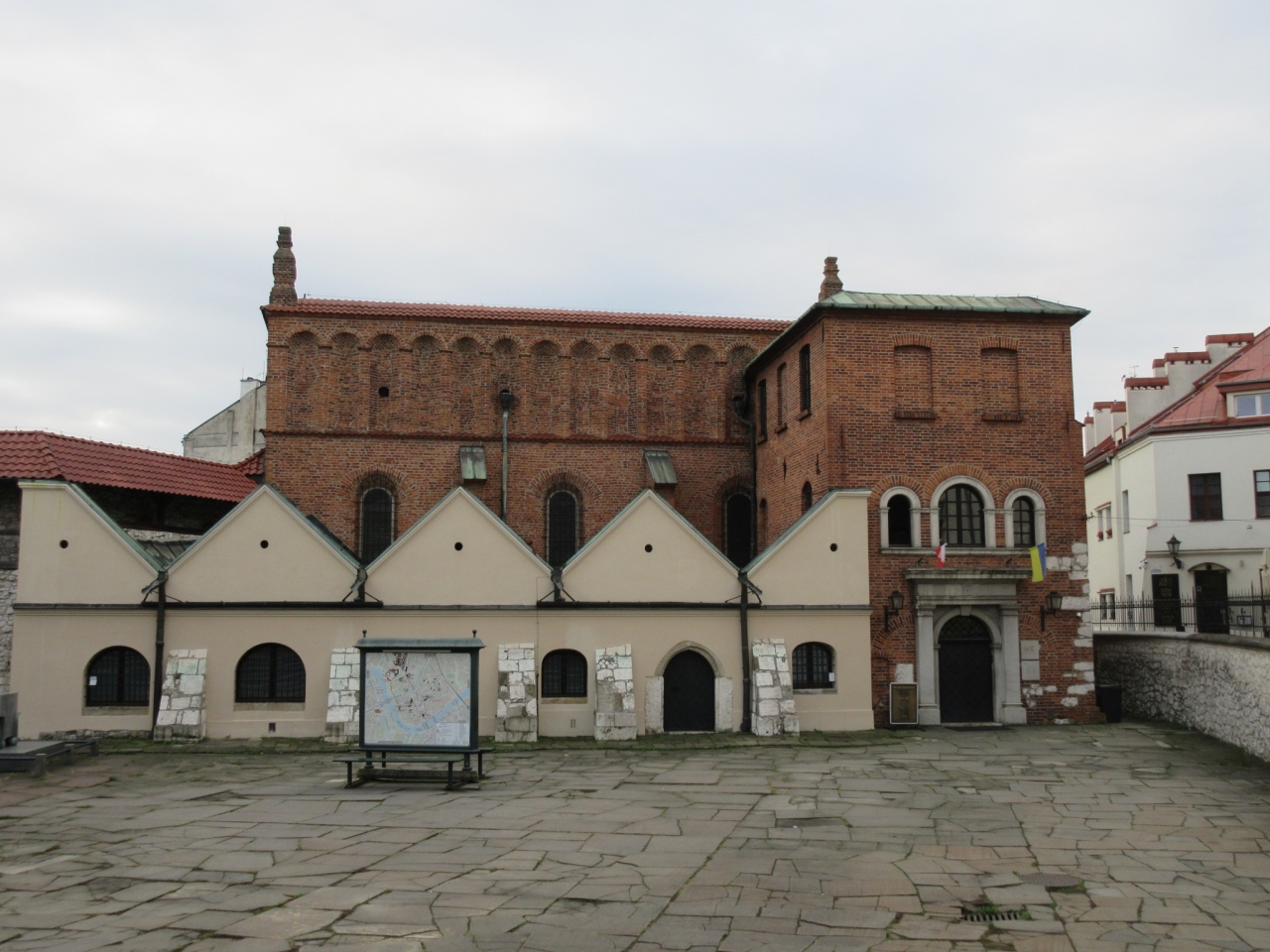 クラクフ滞在の際にカジミチェ地区にあるこちらの【スタラシナゴーグ】を訪問しました。クラコフ中央駅から路面電車でアクセスし(確か3番の路面電車であったかたと)、カジミチェ地区に入ってすぐの場所でした。アクセスが良くしかも分かりやすい場所にあり、ここを起点にして散策すると迷わずにこの一角のスポットを訪問することが出来ました。私が訪れた時には、ウクライナとポーランドの国旗が入口上のレンガの壁面に掲げられていて、連帯感を表しているようでした。