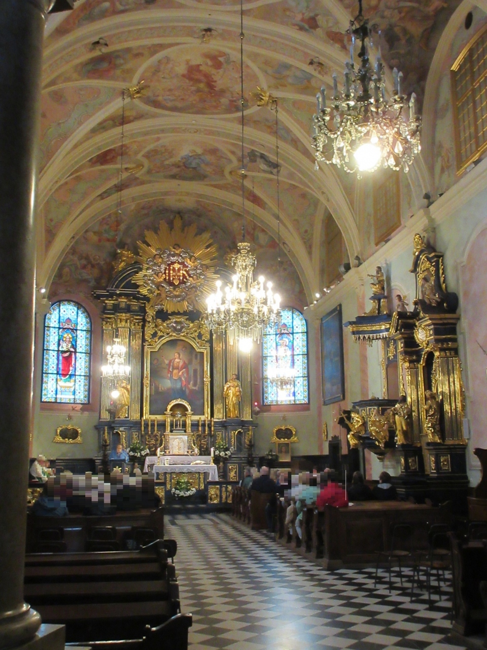 【クラクフ旧市街】に面した有名な【聖マリア教会】の南側の広場になったところにはいった際、裏手のレンガ造りのこじんまりした【聖バルバラ教会】が目に入り立ち寄りました。朝訪れた際には、敬虔なクリスチャンの多いポーランドらしく、大勢の信者が集ってミサが開かれていました。