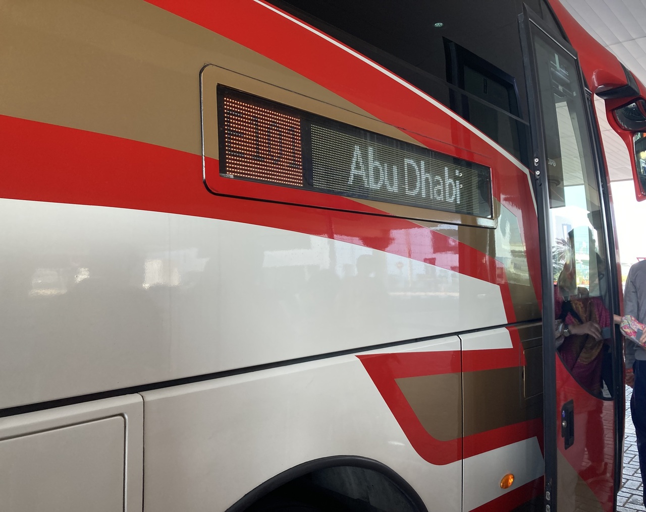 大きなモールがあるメトロの駅です。ここからアブダビ行きのバスが出ています。バスは現金、クレジットカードは不可で、事前にシルバーのメトロカードを購入する必要があり、自販機で購入することができます。駅に行けばバス停はすぐに分かります。