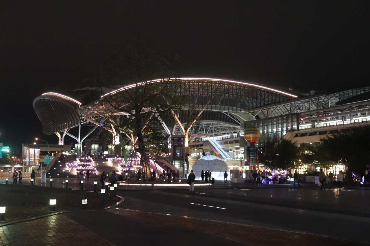 つばさを広げたような大きな高架駅に生まれまわっていました。高雄側にはクラシックな旧駅舎も保存されていました。両駅舎、ライトアップされており、旧駅前の巨大クリスマスツリーとともに、観光客でにぎわっていました。