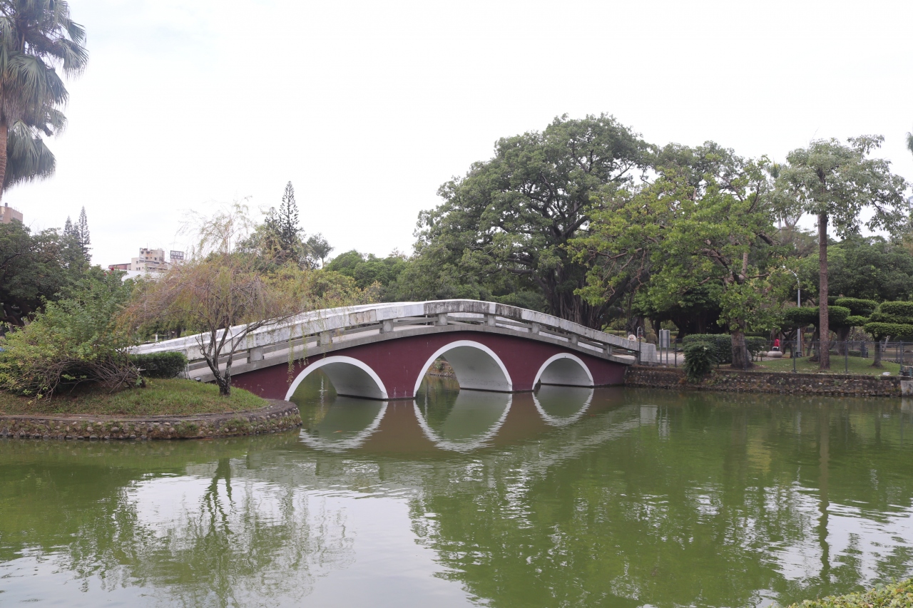 台鉄の台中駅からも近い、町の中心にある都市公園です。たくさんのビルに囲まれ、そう広くはありませんが、園内には池もあり、市民のいこいの場になっていました。将来的に台中の新駅舎前の広場が完成するとさらに近くなります。