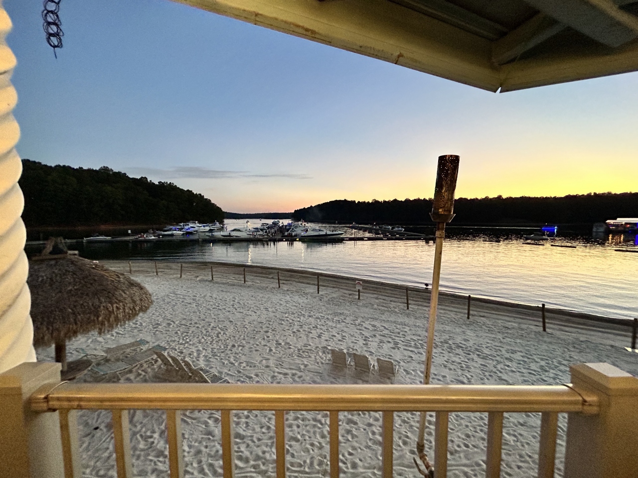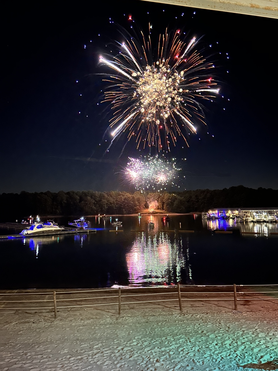 ビーチサイドのレストランでディナーしながら花火