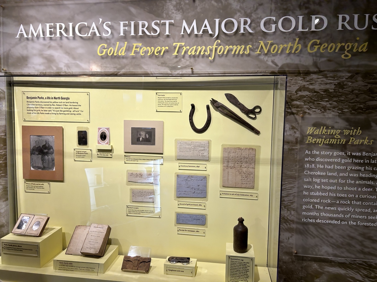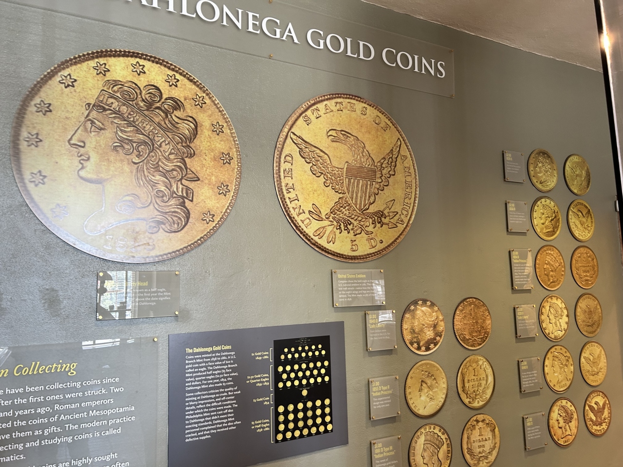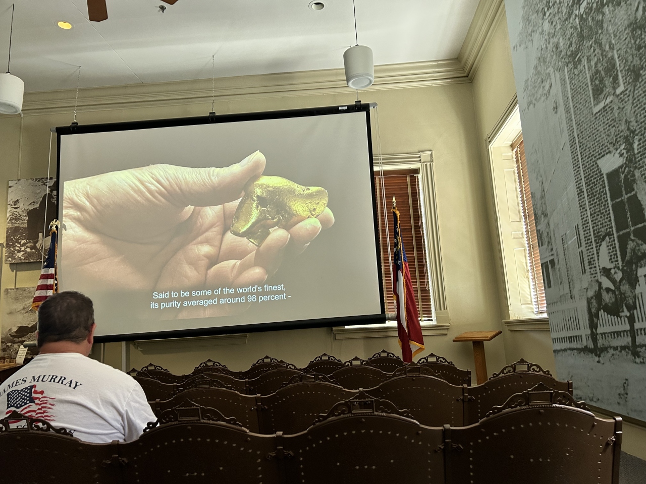 ダロネガのダウンタウンの中心広場のド真ん中にあります。1836年に建てられた州内最古の地方裁判所である、ランプキン郡旧裁判所の建物を転用した博物館で、建物は州指定の歴史建造物に指定されています。1828年にこの地で金鉱が発見され、サウスカロライナ州の町であるシャーロットと共にアメリカで初めてゴールドラッシュに沸いたとのこと。2階が簡易シアターになっていて、ここでまずダロネガの歴史を学びます。ダロネガでどのように金が見つかりゴールドラッシュが起こって白人がなだれ込み、先住民が追い出され、金鉱は一時期繁栄を極めるがやがて金は枯渇し町は寂れる…どこの金銀銅他鉱山でもよくある、そんなヒトの浅ましくも儚い営みを知ることができます。ここは地方裁判所でしたので、判事の部屋なども遺されていました。ダロネガ、およびアメリカのゴールドラッシュの歴史を学べる場所です。