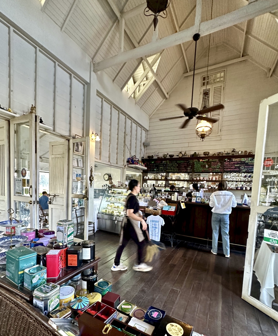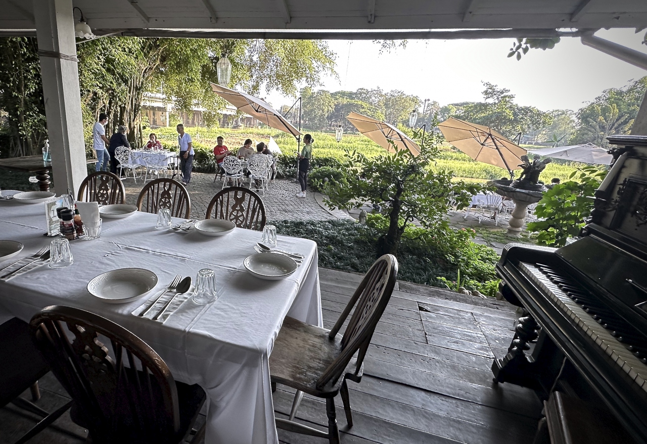 お店は、川のほとりに建っている、歴史のありそうな白い旧家を利用して、レストラン、カフェに改築した感じ。