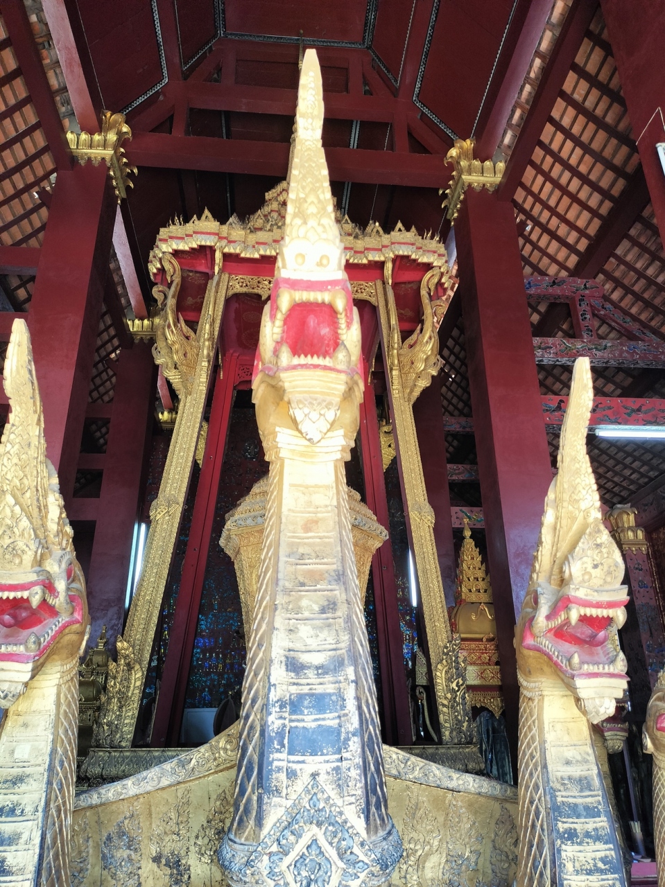 ルアンパバーンに来たらぜひ訪れるべきお寺です。特に印象深かったのは御車堂にあった大きな金の龍が連なる霊柩車です。迫力がありました。赤堂のモザイク画な可愛くて素敵でしたが、こちらは1900年代に出来た最近のもののようです。