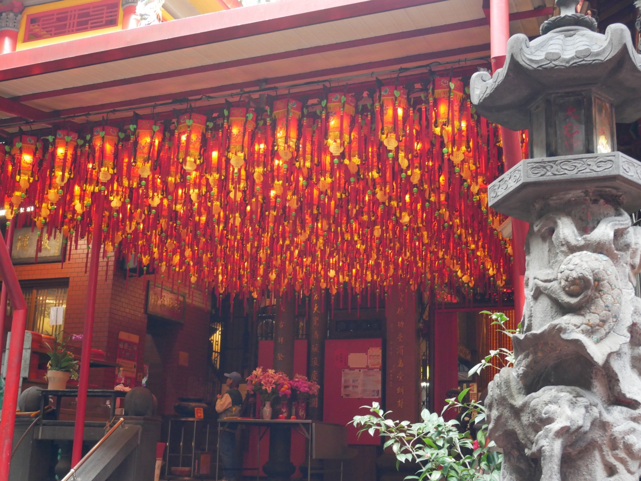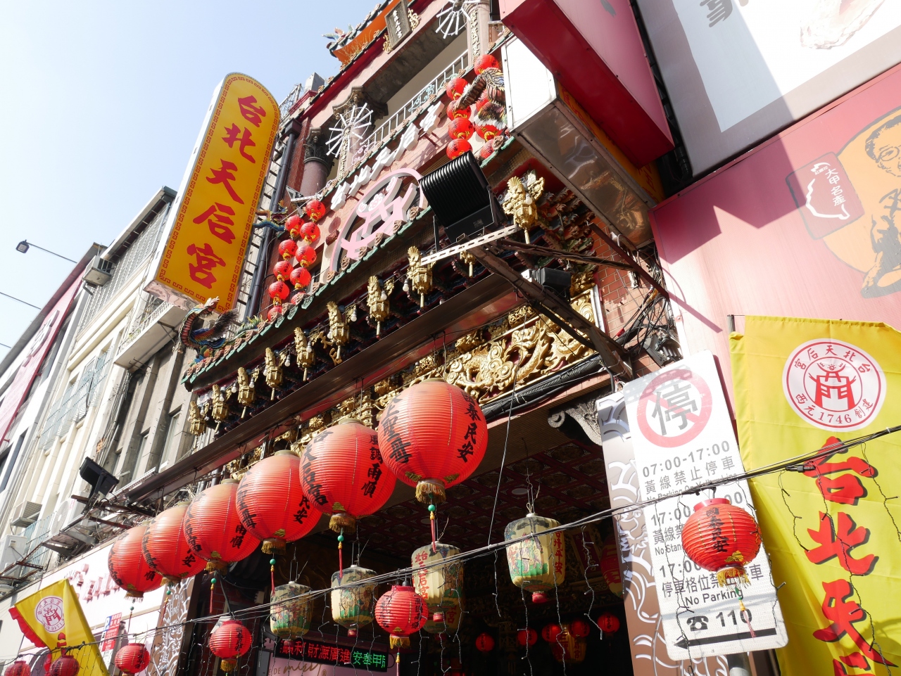 西門駅からほど近い廟。大通り沿いの新しい建物に囲まれていますが、ここだけは歴史あるきらびやかな建物が残っています。多数吊るされた赤い灯りがとても印象的で、見ごたえのある廟でした。