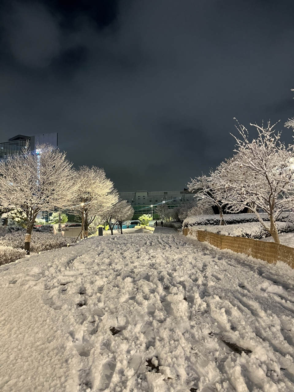 訪問時は1月でちょうど雪が降ってきたので、雪遊びに講じる人が多く訪れていました。都会の中にあるので、こじんまりとした公園ですが、緑が多く、のんびりと散歩するには東大門歴史文化公園駅からも近く良かったです。