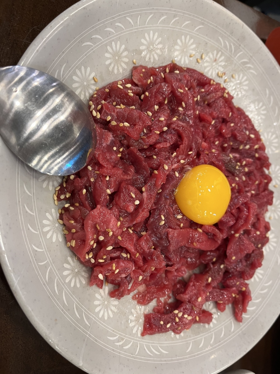 他のユッケ通りの店より少しだけお高い。1000wくらい。ユッケビビンバのご飯は別盛り!