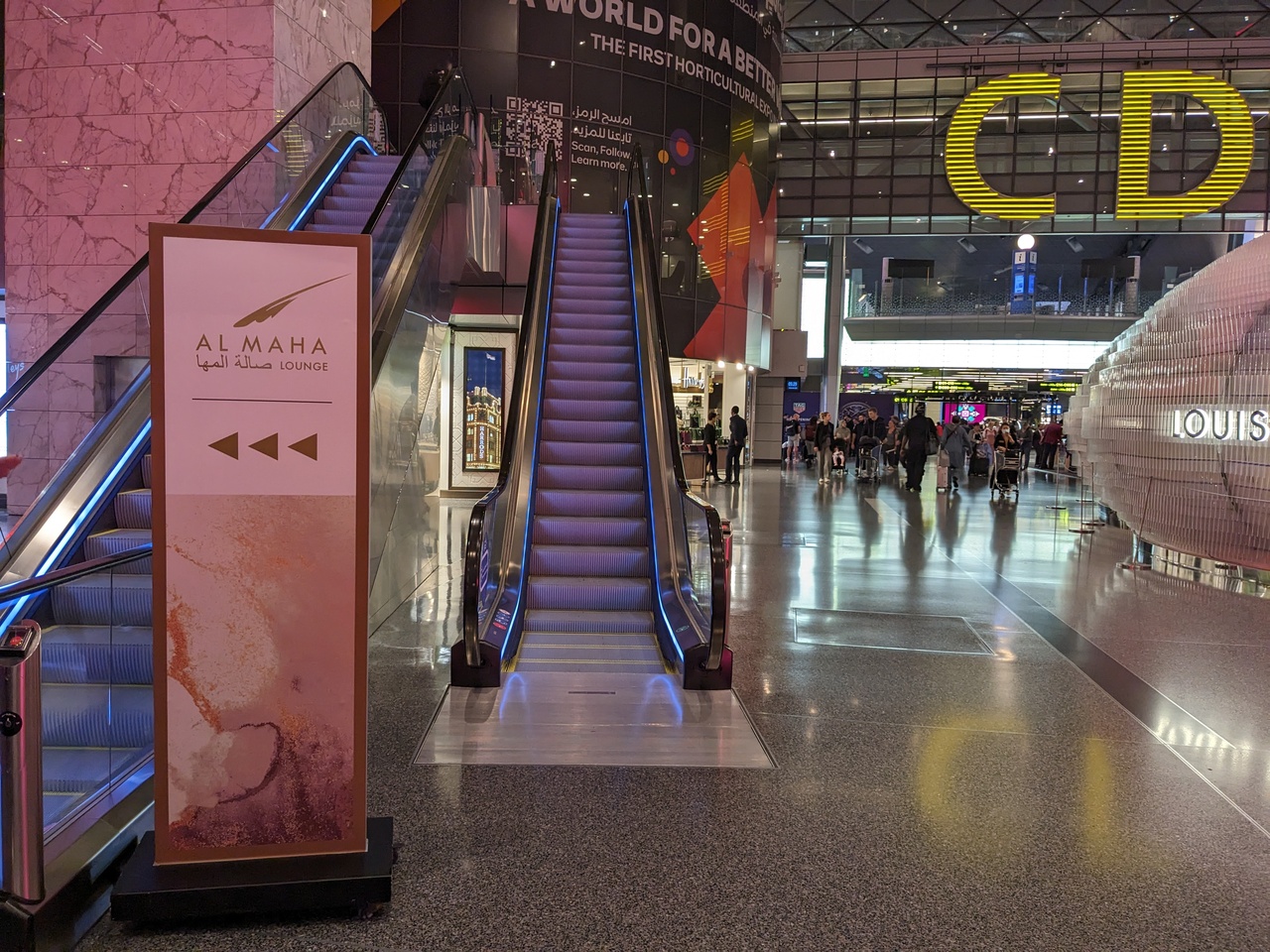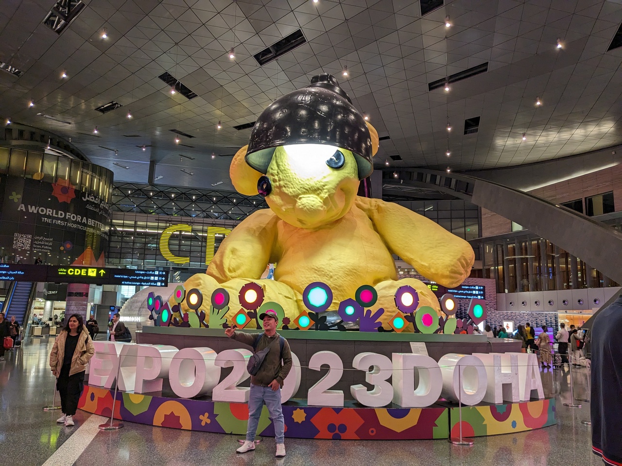 プライオリティパスで入れるアルマハラウンジは、目印になっている黄色い大きなクマさんの向かって左側にあるエスカレーターを上がった先にあります。