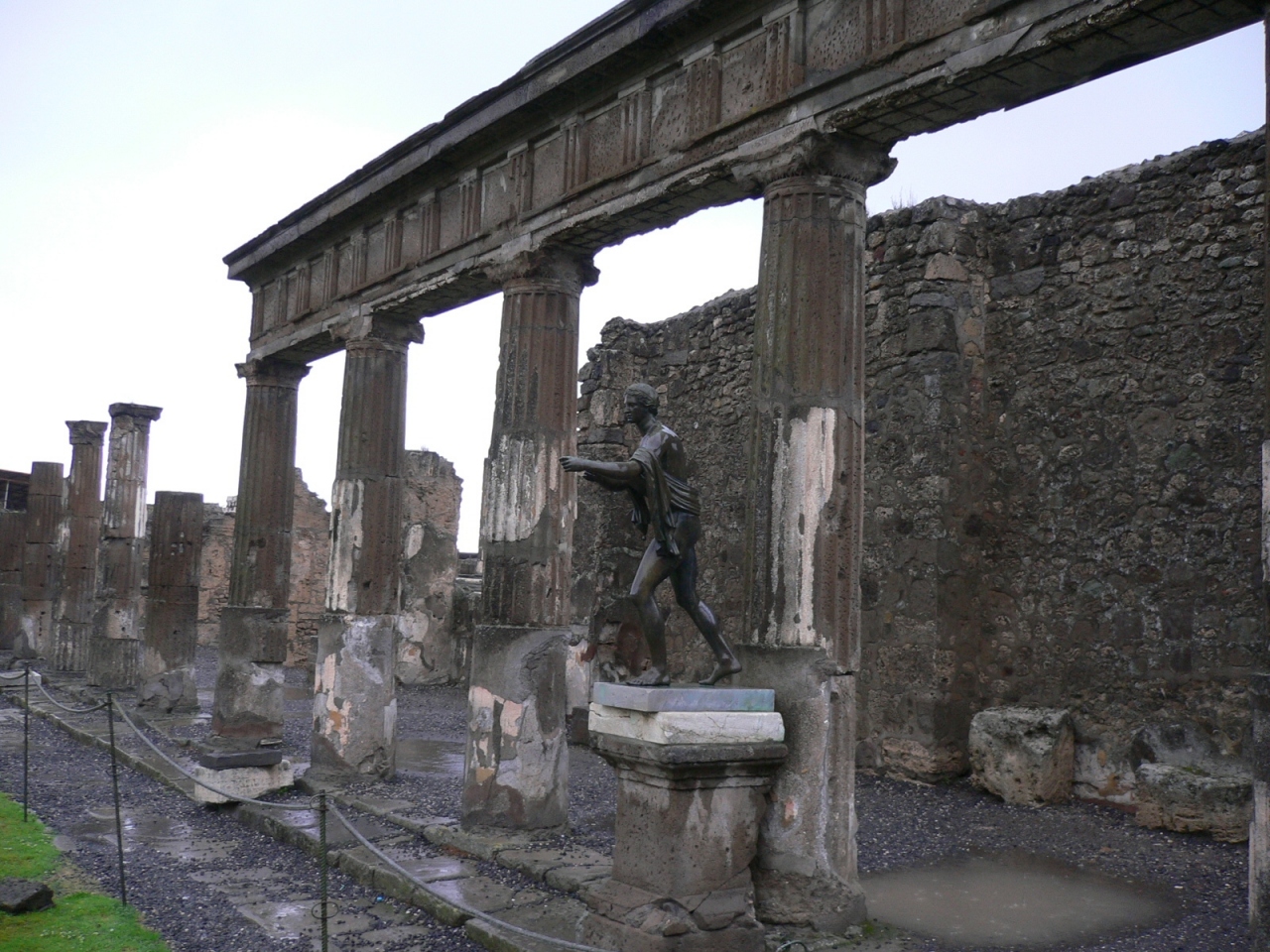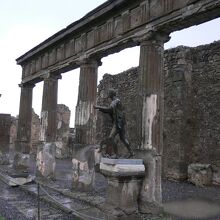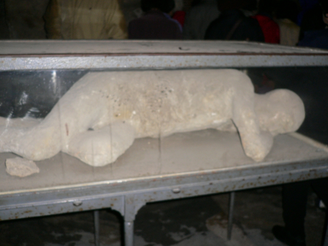 スタビアーネ浴場はポンペイで一番古い公衆浴場だそうです。複合体育施設の広場で内部に大きなプールまであったそうです。ガラスのケースに入った石膏が2体の横たわる人間像がありドキッとしました。噴火で生き埋めになったのを展示しているようです。