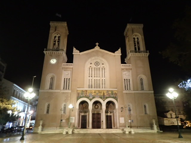 ギリシャ正教の教会で、ミトロポレオス広場にあります。シンタグマ広場から、徒歩でも10分かからないくらいでした。1840年に着工し、完成まで55年かかったそうです。大統領就任式などもここで行われるとのことです。