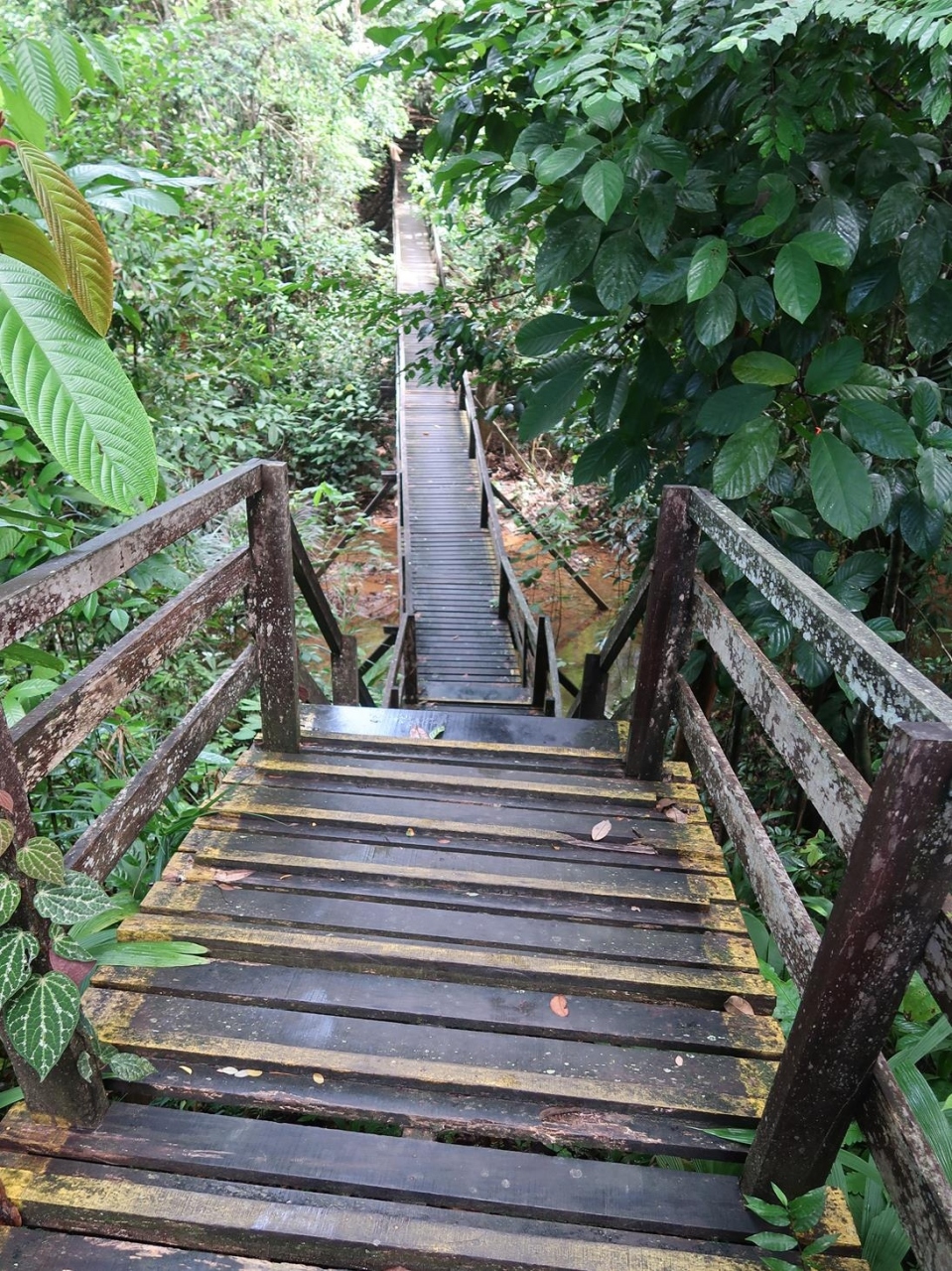 入口となる階段を下るとすぐにジャングルが始まり、小さな流れがある上の木道や吊り橋を歩いて行くのがワクワクの冒険気分。