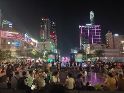 カウントダウンイベントに行きました。とにかくすごい人。ホーチミン中の人が集まったかのようです。イベント会場はチケットがないと入れないので、通りのあちこちに大型モニターがあり、イベント会場の様子を映しています。スポンサー企業が無料のジュースやグッズを配って、屋台もたくさん出て、縁日のような雰囲気でした。