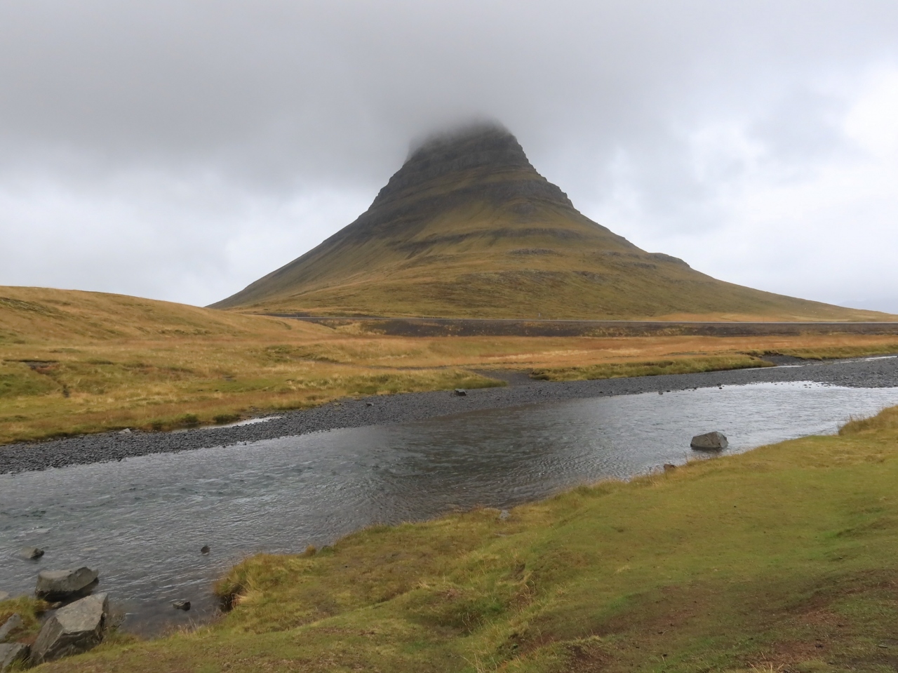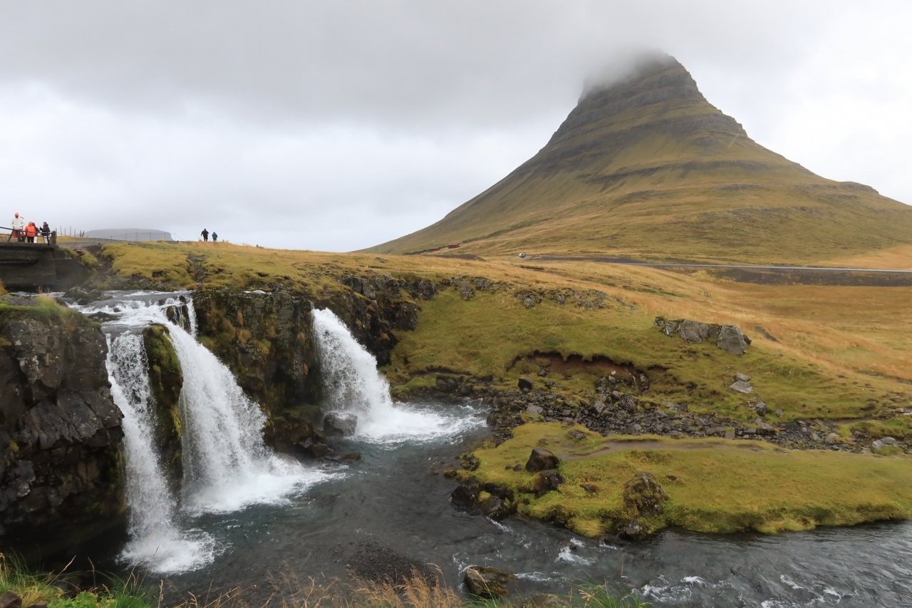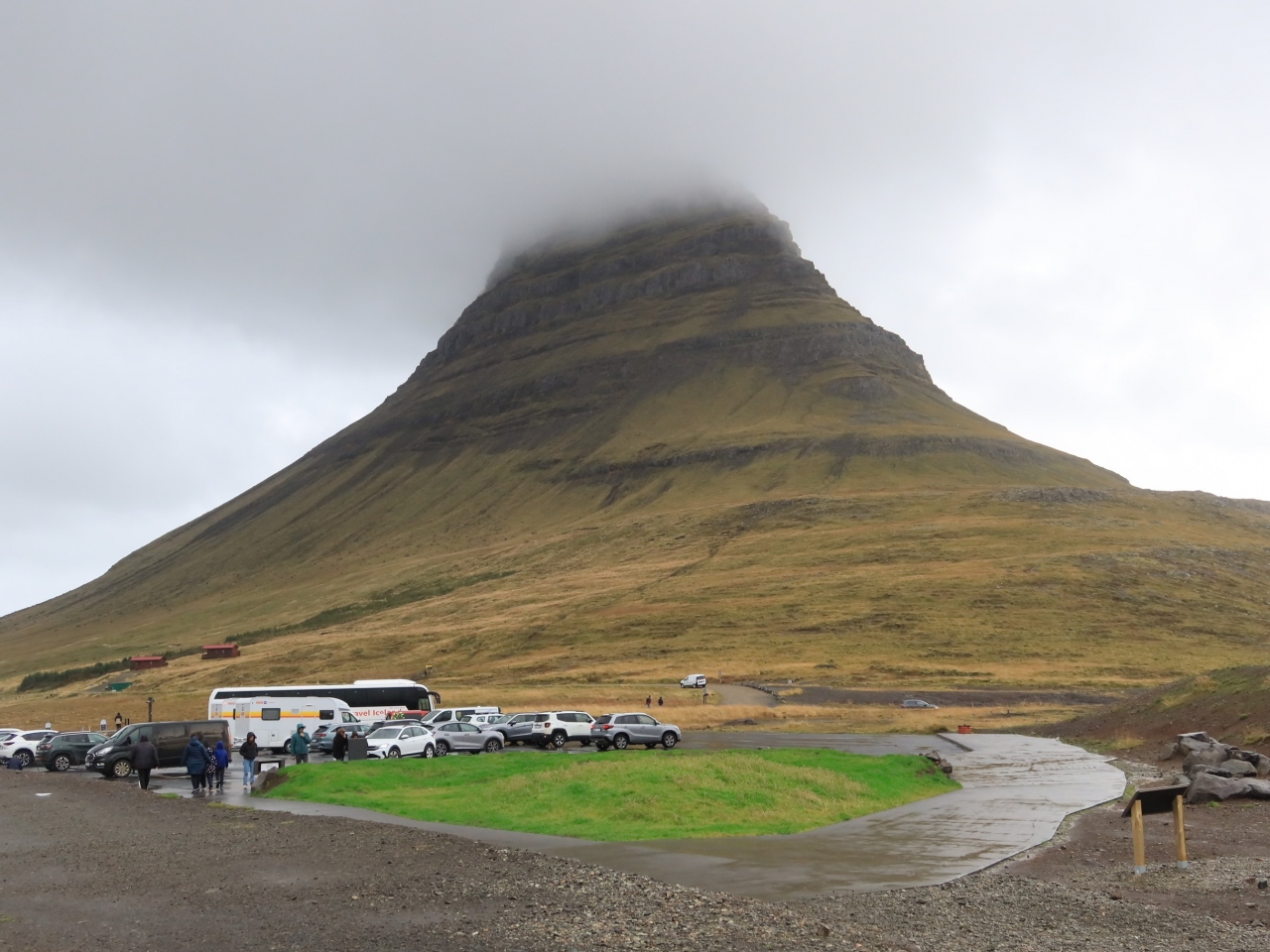 南側にあるキルキュフェットルスフォスという滝とセットで写るキルキュフェトル山は、アイスランドを代表する景色のひとつといっていいでしょう。