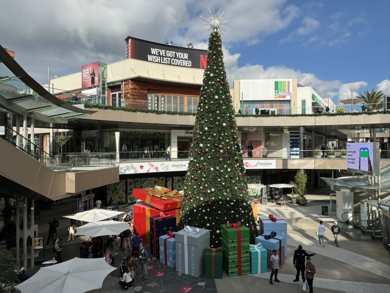 サンタモニカのアイコン的存在のサンタモニカプレイスは、地上3階の開放的なショッピングモールで、サードストリートプロムナードの起点になっています。ショッピングモールの中央にはイベントスペースがあり、数本の背の高いヤシの木など、南国の雰囲気が漂っています。