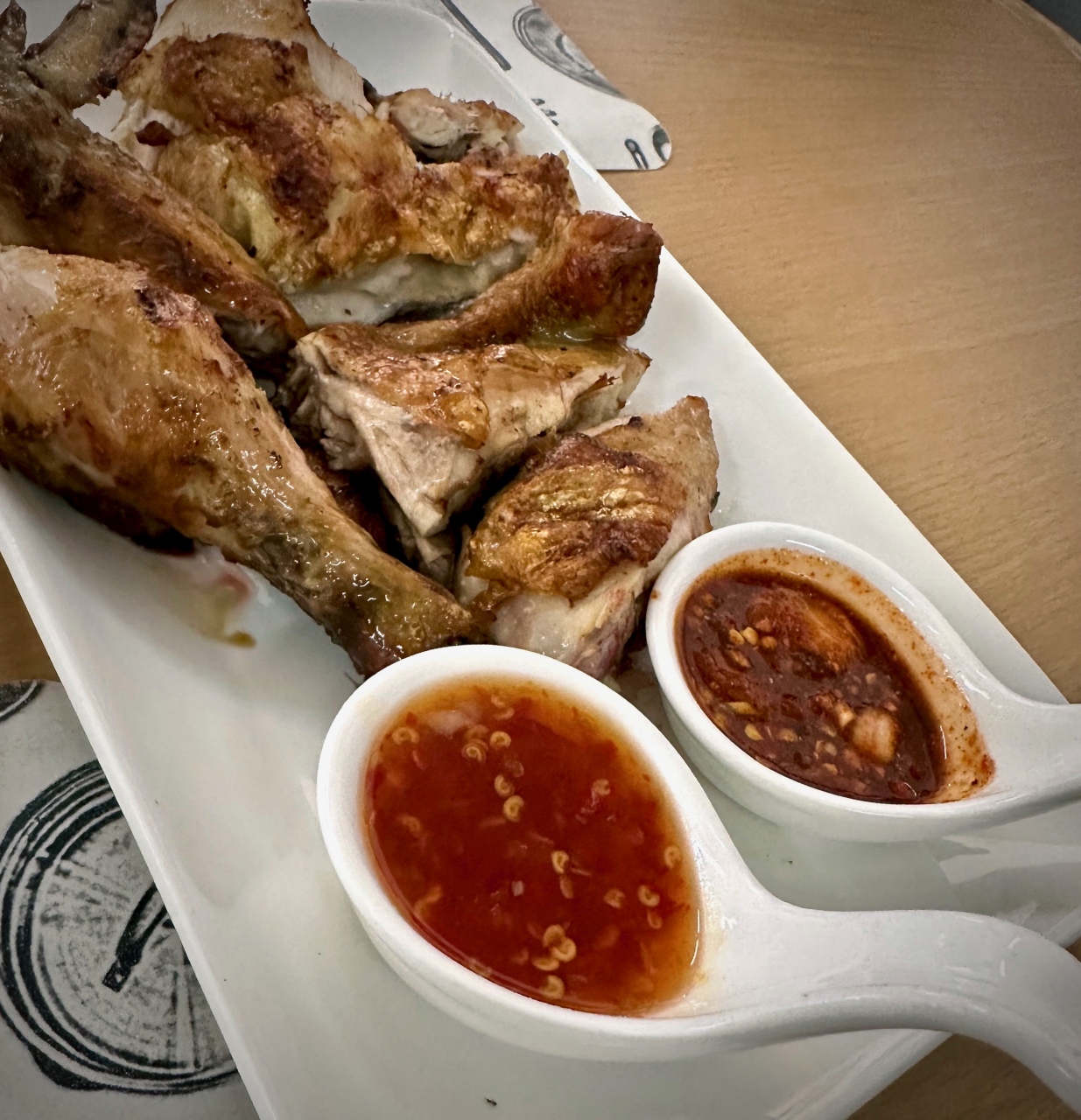 『ガイヤーン』とは、タイ北部のイサーン地方の名物だそうで、鶏肉(タレ付け)を、炭火でじっくりと焼き上げた料理の事。