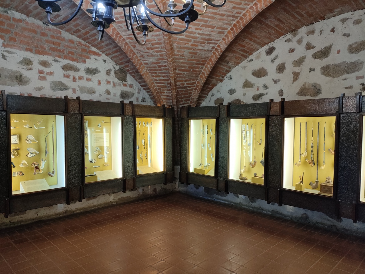 城の内部は特段の水準ではないヨーロッパ諸国の磁器、 タバコパイプ、その他 骨董品 レベルの展示品。