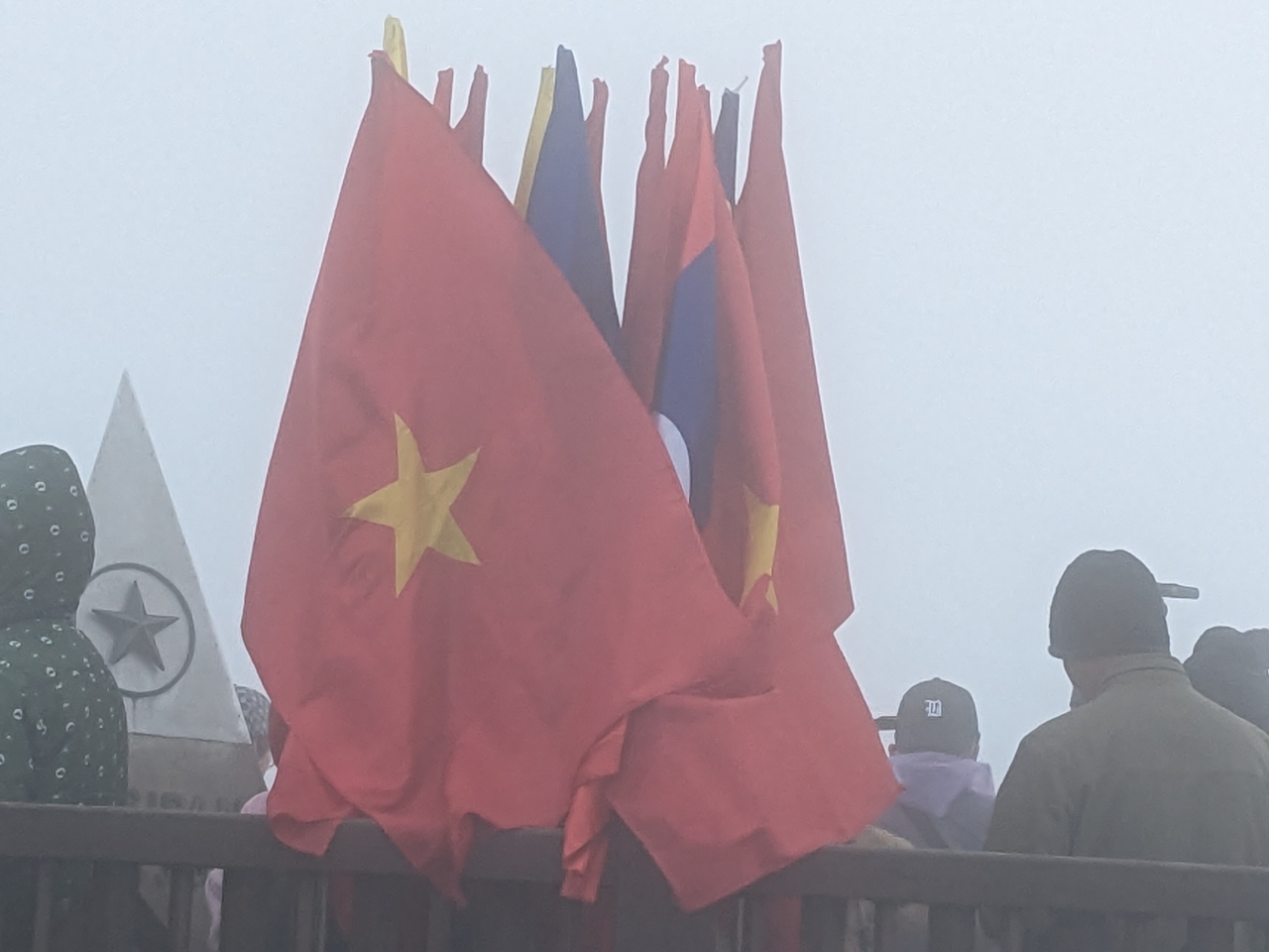山頂にはベトナム国旗がはためき、見張りのような係員がいて、客でにぎわっています。
