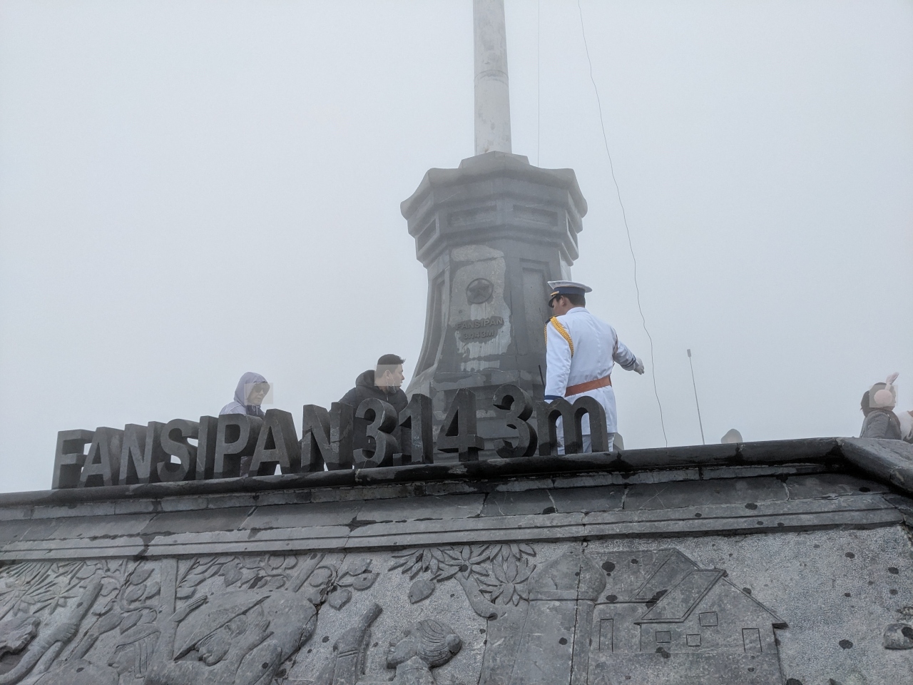 山頂付近は霧が多くて、酸素が薄くなり、階段の上り下りがすこしきつい感じでした。