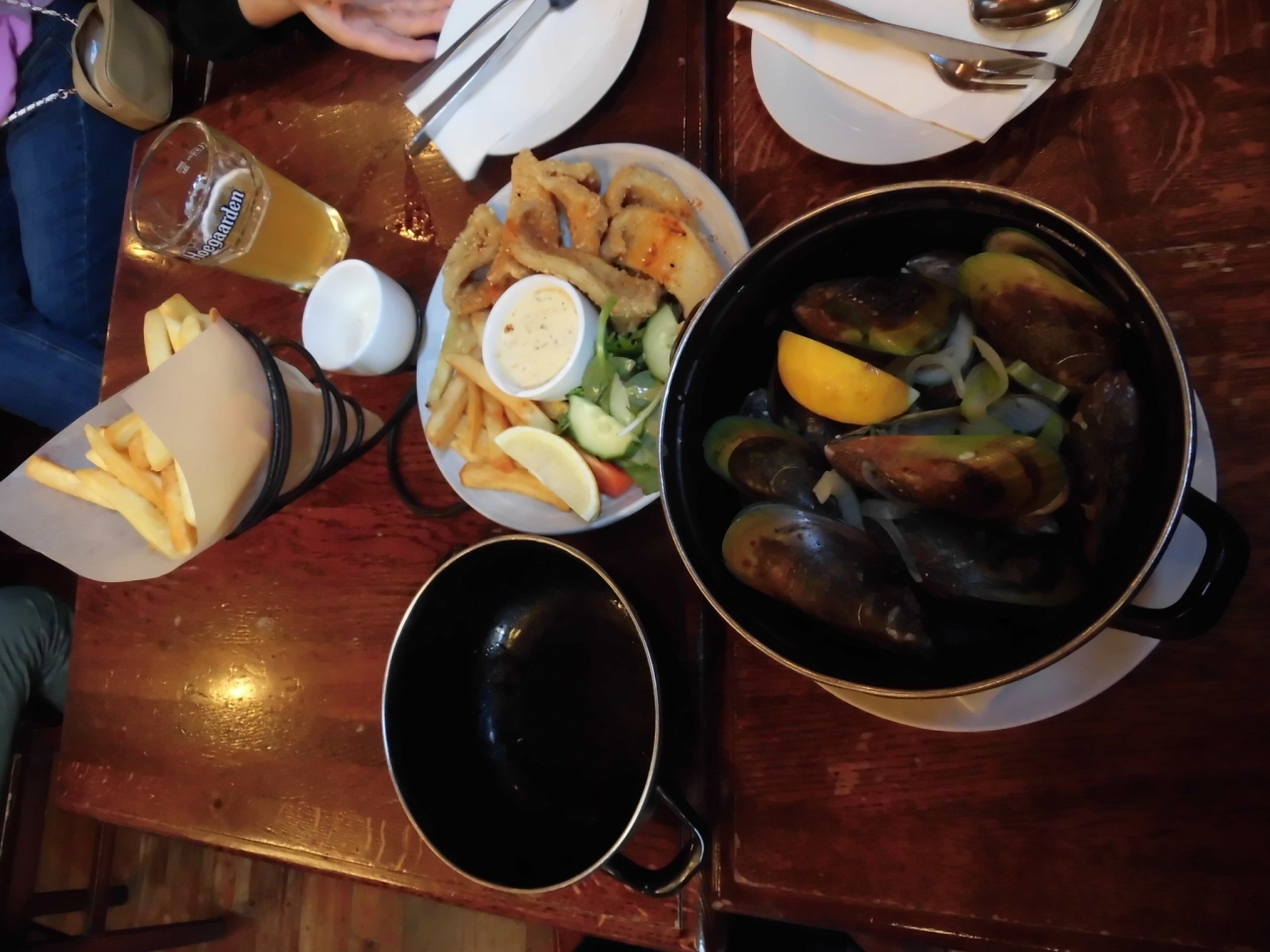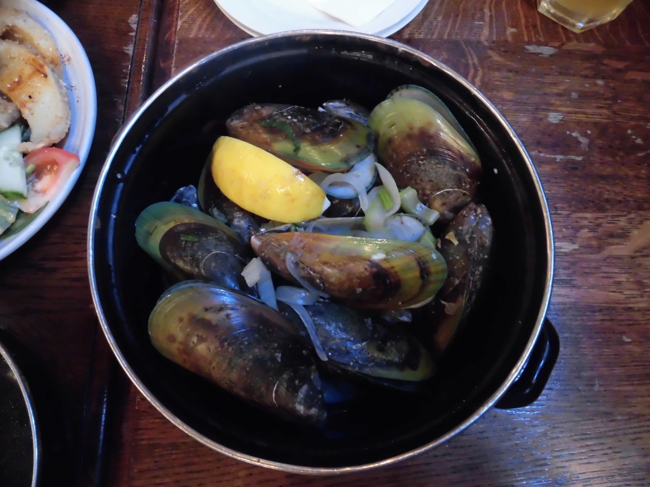 ニュージーランド観光では、是非ともムール貝を食べたかったので、ディナータイムに行きました。少し早めだったので、スムーズに入店できました。店内の内装もレトロな歴史を感じる造りで、お店の雰囲気も最高でした。そして期待のムール貝、大きな鉄の鍋で調理されたムール貝が、大きめで肉厚で食べ応え十分。他にもイカのフリッター、ポテトフライ、そしてビールと、一日の締めくくりとなる食事に大満足でした。