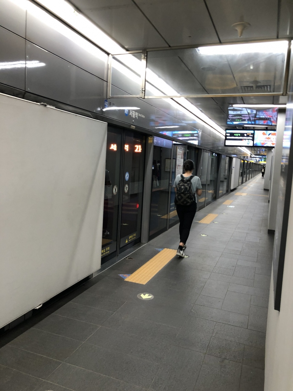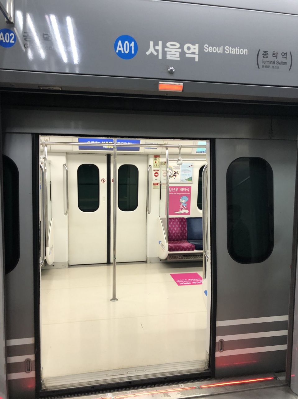仁川空港から空港鉄道A’REX普通列車で国鉄ソウル駅舎の地下深い7階ホームに到着しました。