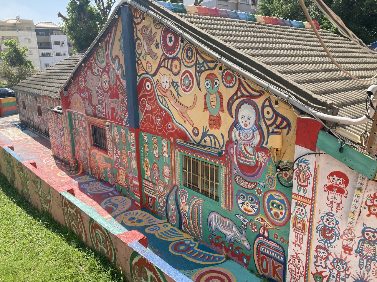 台中市のほぼ郊外にある観光スポット。独創的で可愛らしい絵が総天然色の壁に書かれています。このような絵は正直上手いとはいえないかと思いますが、独創的な発想で作品の多さなどあらゆる面で突き抜けると、とある日から芸術になるんでしょうか。