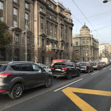 聖マルコ聖堂から聖サワ大聖堂まで少し距離がありましたが、歩いて行った時に通った通りです。この辺りは碁盤の目のようになっていますが、このkralja Milana通りは斜めに世凝っているので近道でした。最後はロータリーのスラヴィア広場に突き当たります。左右にお店や公園などがある賑やかな通りです。