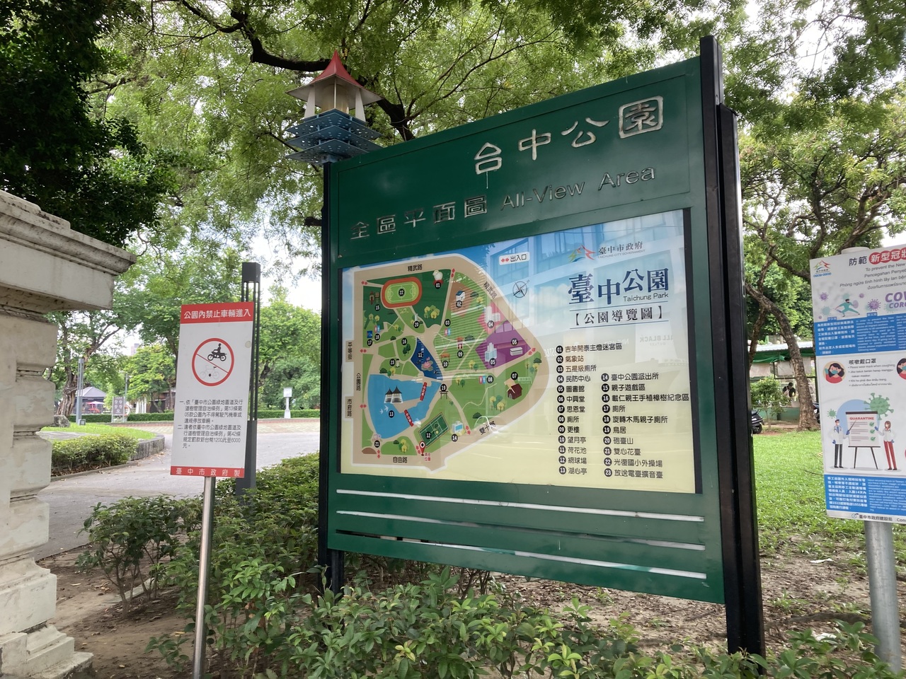 台中駅から徒歩10分くらいの距離にある比較的広い公園です。公園内には、池に中国風の橋が架かっていたり、また噴水があったりと、それなりに見た目は変化があります。あくまで日中に訪れただけですが、治安に不安は感じられませんでした。