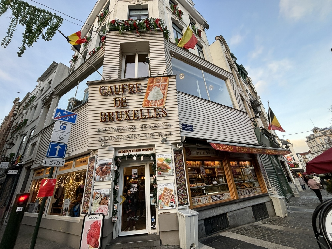 ブリュッセル中央駅の程近く、小さなアゴラ広場に面した名店で、朝寝坊の多いブリュッセルにしては早朝7時台からオープンして賑わっています。看板メニューのワッフルはテイクアウトもしていますが、もちろん店内でもゆっくり楽しめます。大学の食堂みたいな雑然っぷりで、良くも悪くも肩ひじ張らずに一人でも過ごせます。