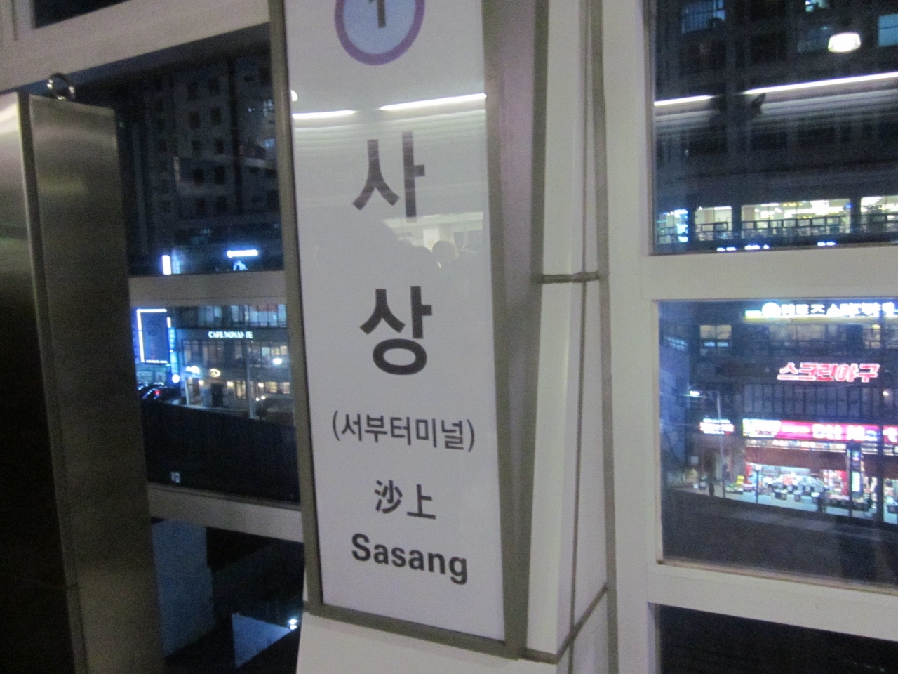 空港からは金海軽電鉄と言うモノレールのような乗り物が走っていて、3つ先の沙上駅で地下鉄に乗り換えになります。沙上駅の周辺は、ホテル、飲食店などが何件かあって栄えているエリアのようでした。地下鉄の乗り場までは少し歩きますが、案内があって簡単に移動できました。
