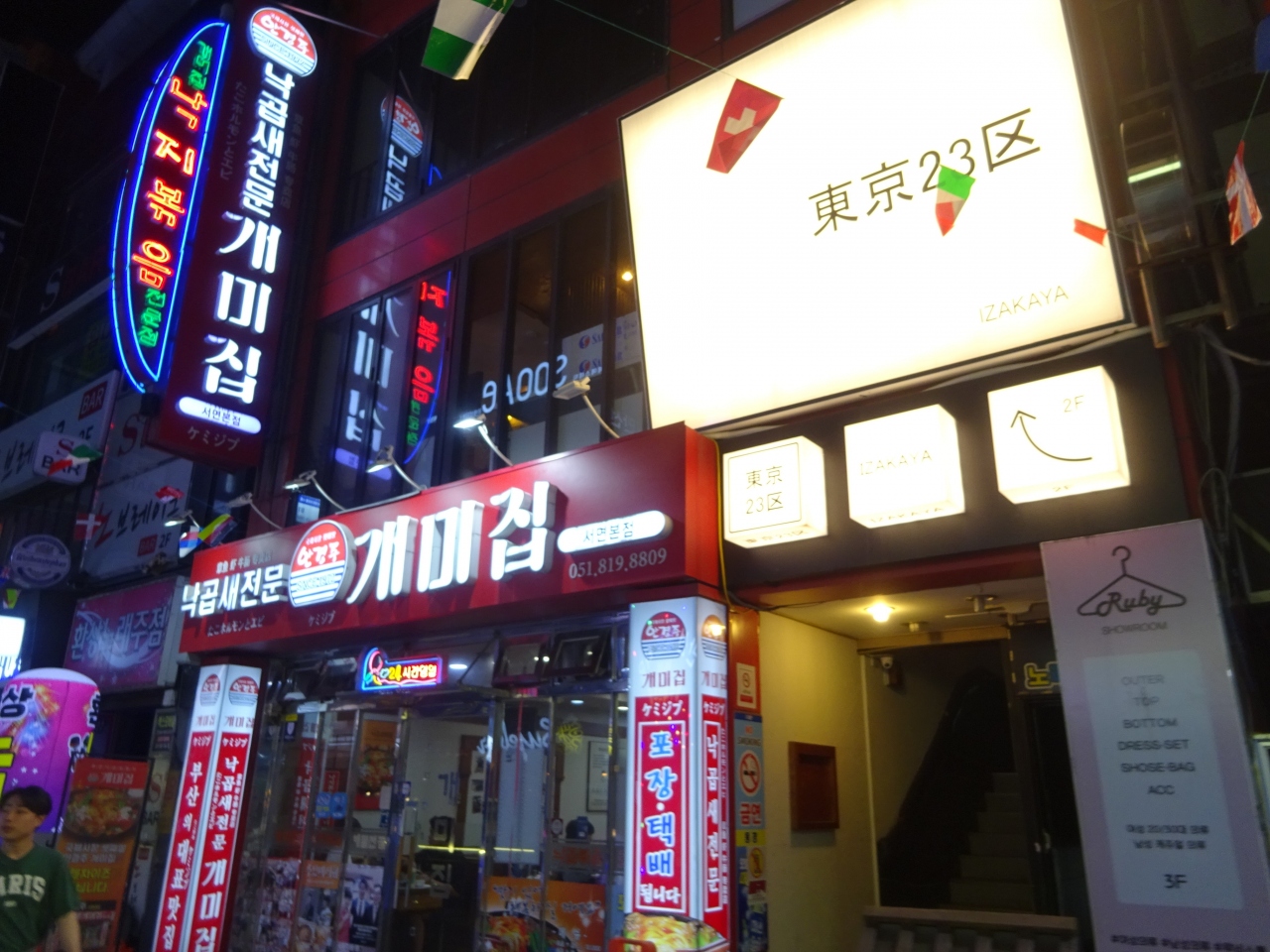釜山のケミチブ (西面店) です。なんというか観光客も来ていて、入りやすいお店です。スタッフの方もかんじが悪いとかも無いと思います。夜も開いているので、とても便利です。味もおいしくて、くせになりそうなかんじ?です。