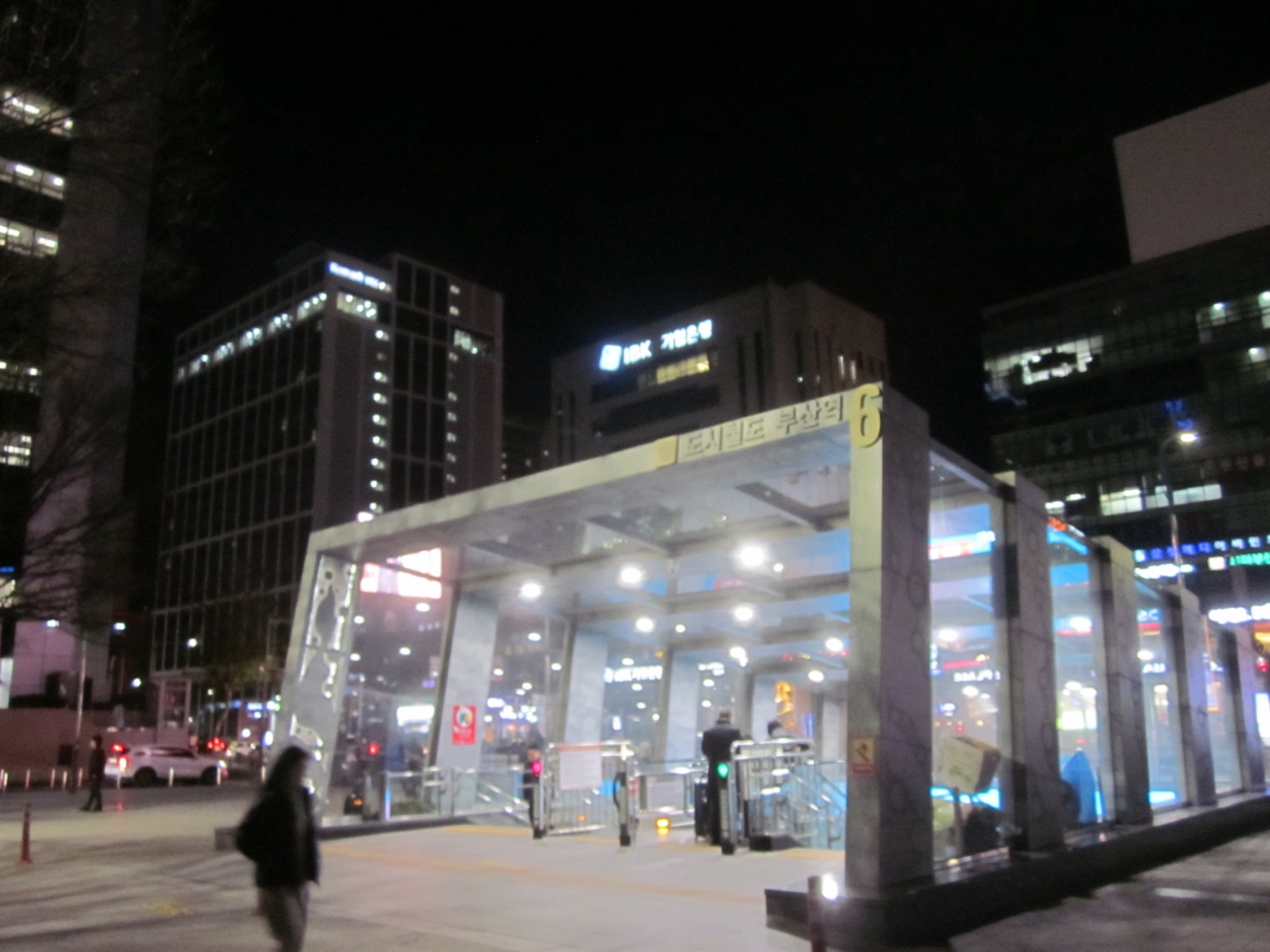 バスでもアクセス可能で楽ですが、到着が17時頃でしたのでラッシュに合うと思い地下鉄にしました。金海国際空港からは乗り換えを含めて30分ほどで着いたと思います。釜山駅は、国鉄、KTXも走っているので、韓国の各都市か旅行に来られる方で賑やかでした。