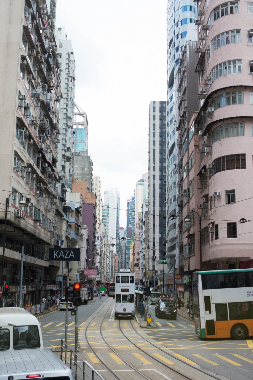 香港そごうやHSBC本店の前なども通るトラム。香港島側にしかないので、ゆっくりのんびりした気分で乗ることができます。最上階のフロント部分はやや狭いのですが、観光だものとここに陣取りゆっくり車窓を眺めるのも楽しいですね。