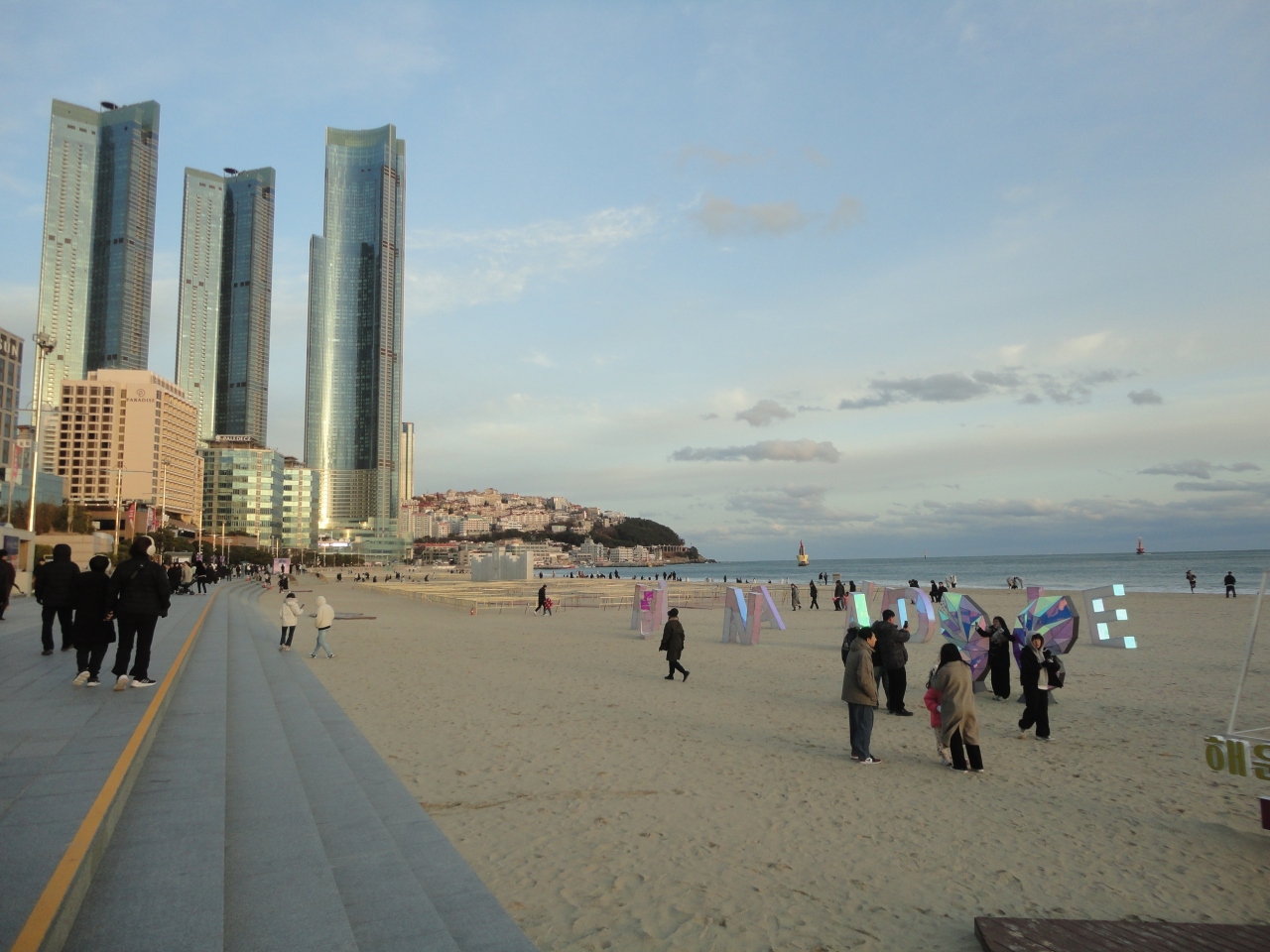 海雲台のビーチ沿いに遊歩道が整備されています。真冬で寒い時期でしたが、せっかくなので海を見に行こうと思って歩きました。真冬でしたが、観光客は意外と多かったです。