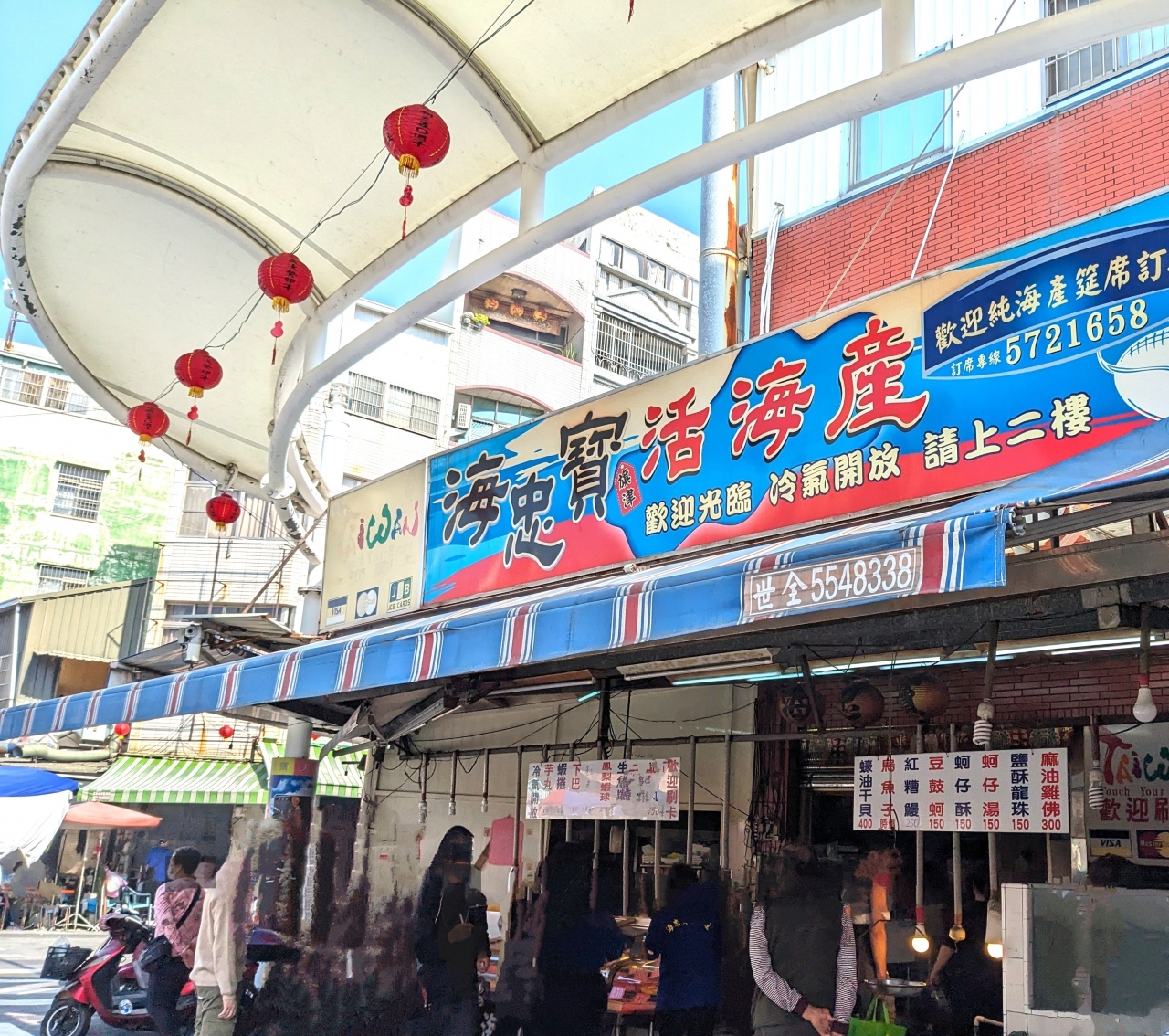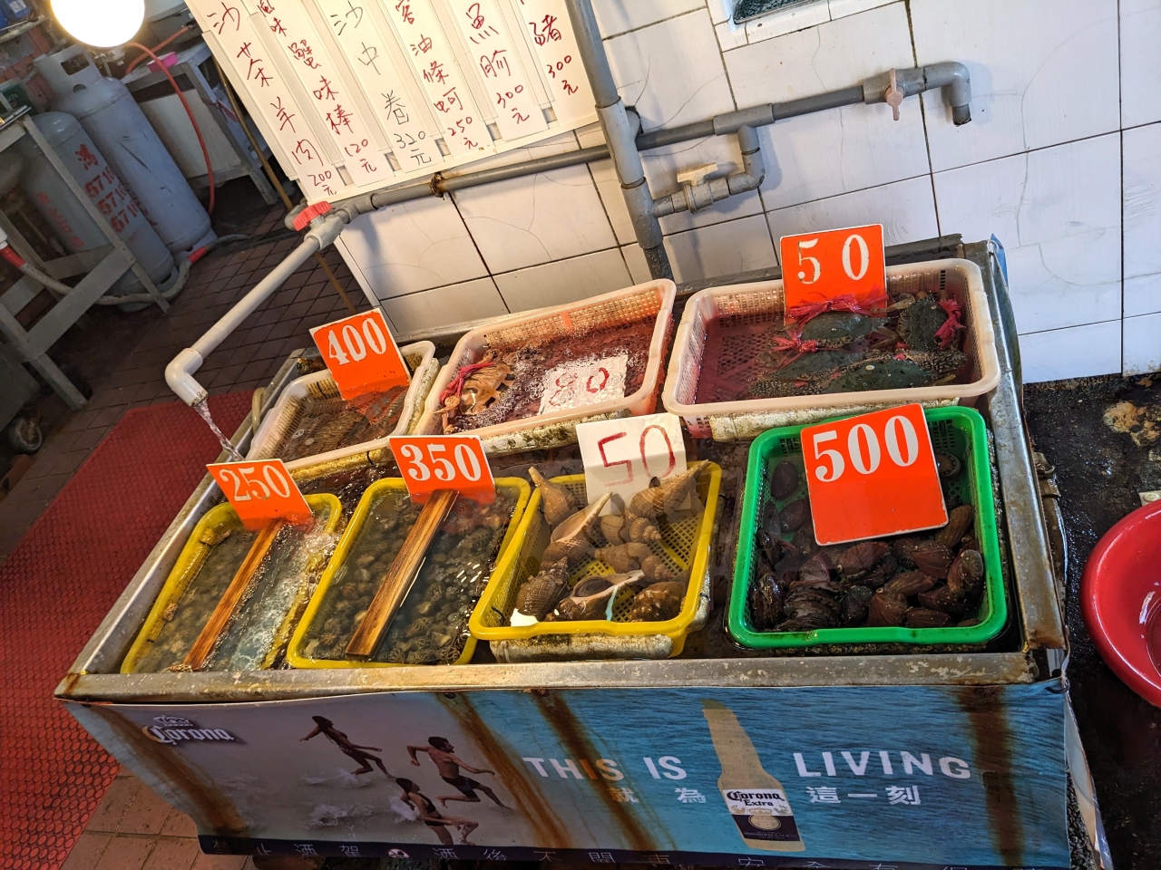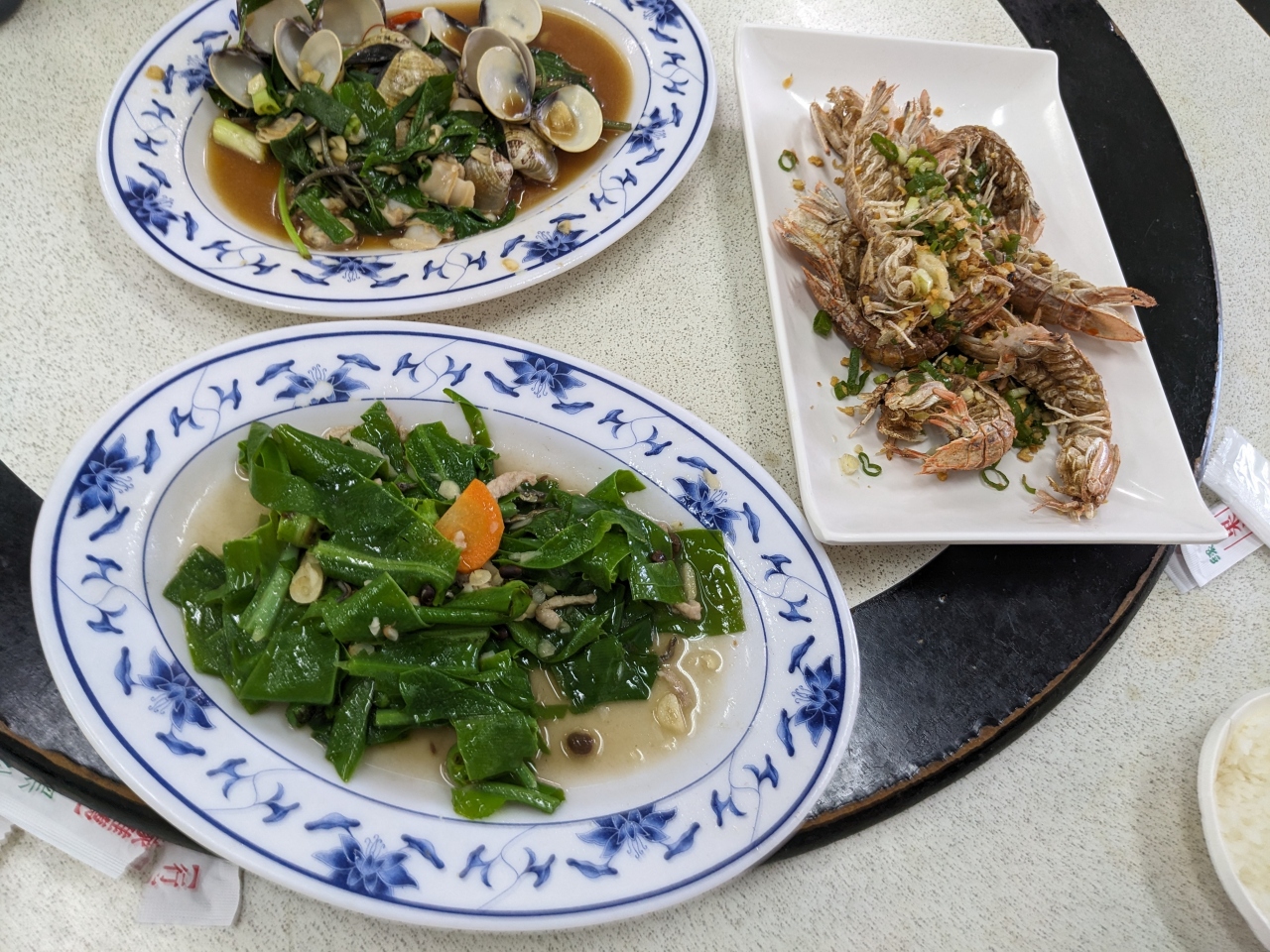 旗津半島の美味しいシーフード店、指さして調理してもらう。ごはんは食べ放題。