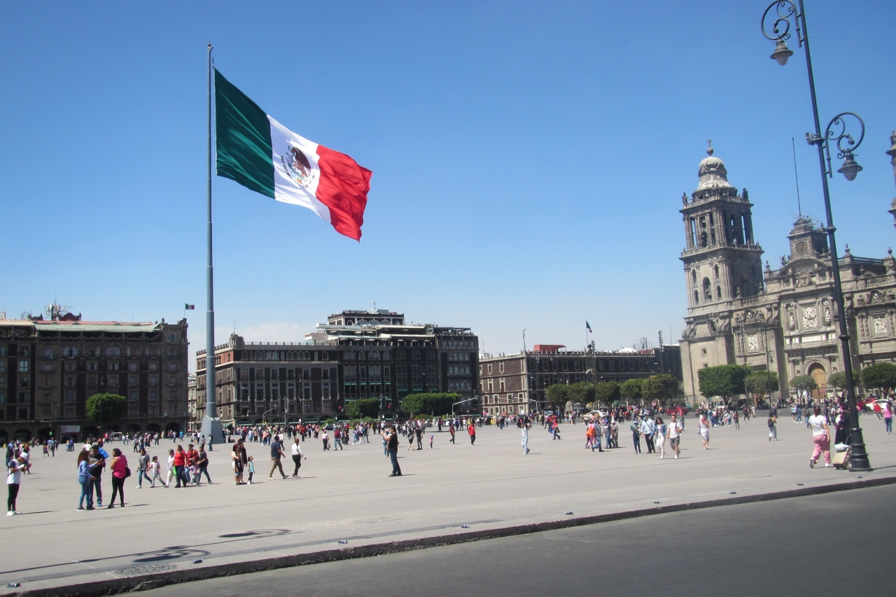 メキシコシティのソカロは大きな広場と大きなメキシコ国旗が特徴です